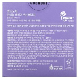 Cosnori Almofada de Pantenol com FPS 50+ PA ++++ Bege 12 g – Cosnori Beleza Maquiagem Rosto Base Bases K-Beauty.