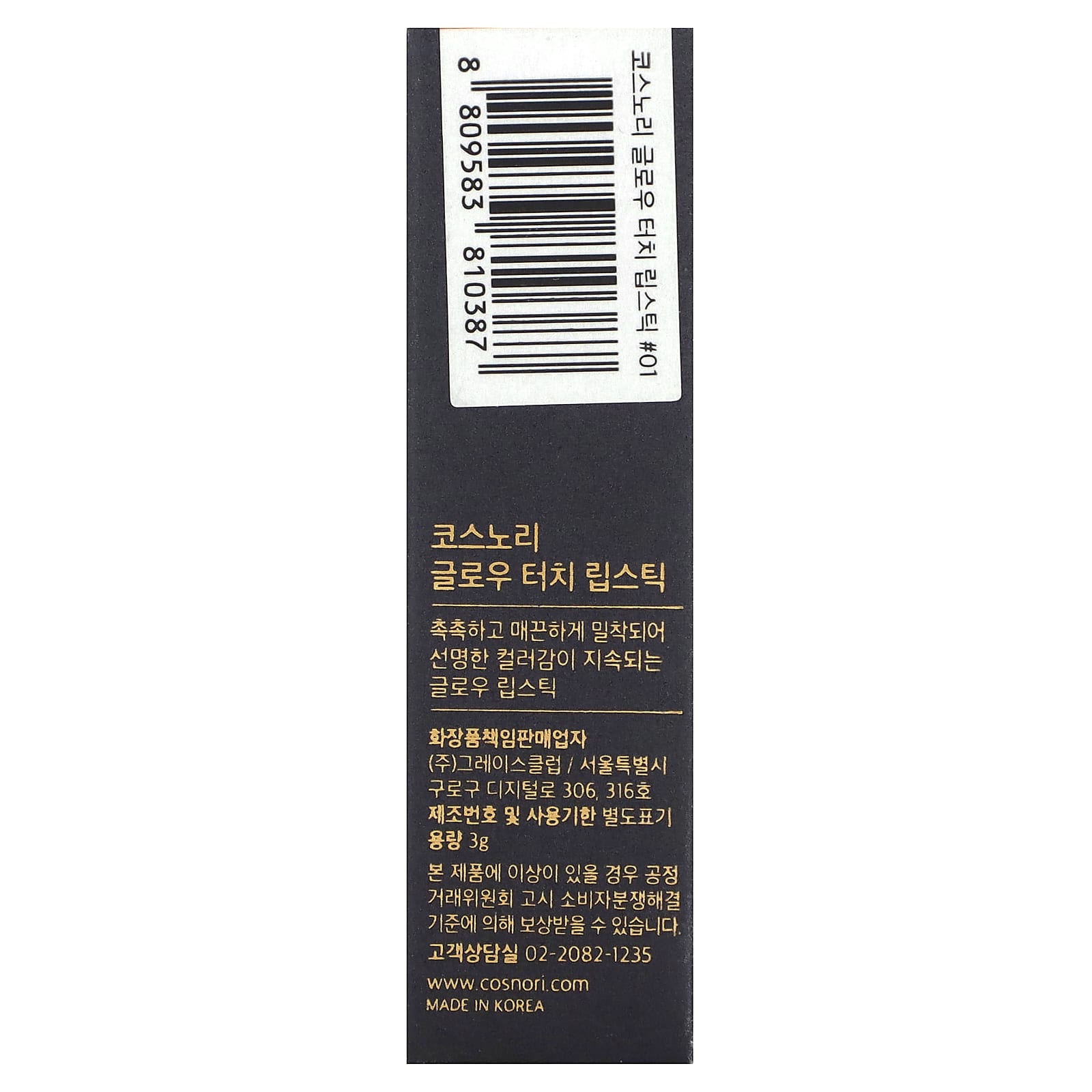Cosnori Batom Glow Touch 01 Pêssego Suave 3 g – Cosnori Beleza Maquiagem Lábios Batom Batons K-Beauty.