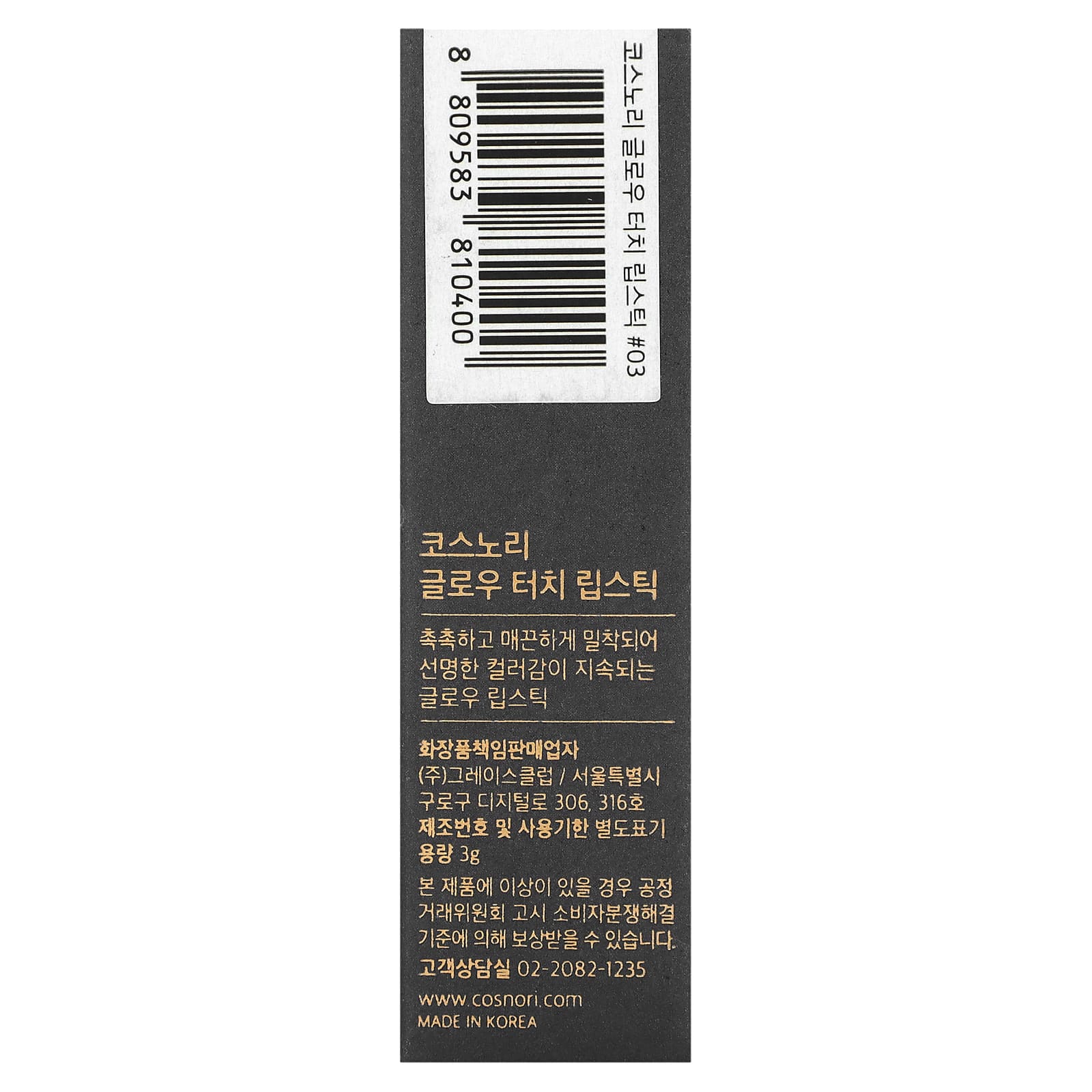Cosnori Batom Glow Touch 03 Cheeky Orange 3 g – Cosnori Beleza Maquiagem Lábios Batom Batons K-Beauty.