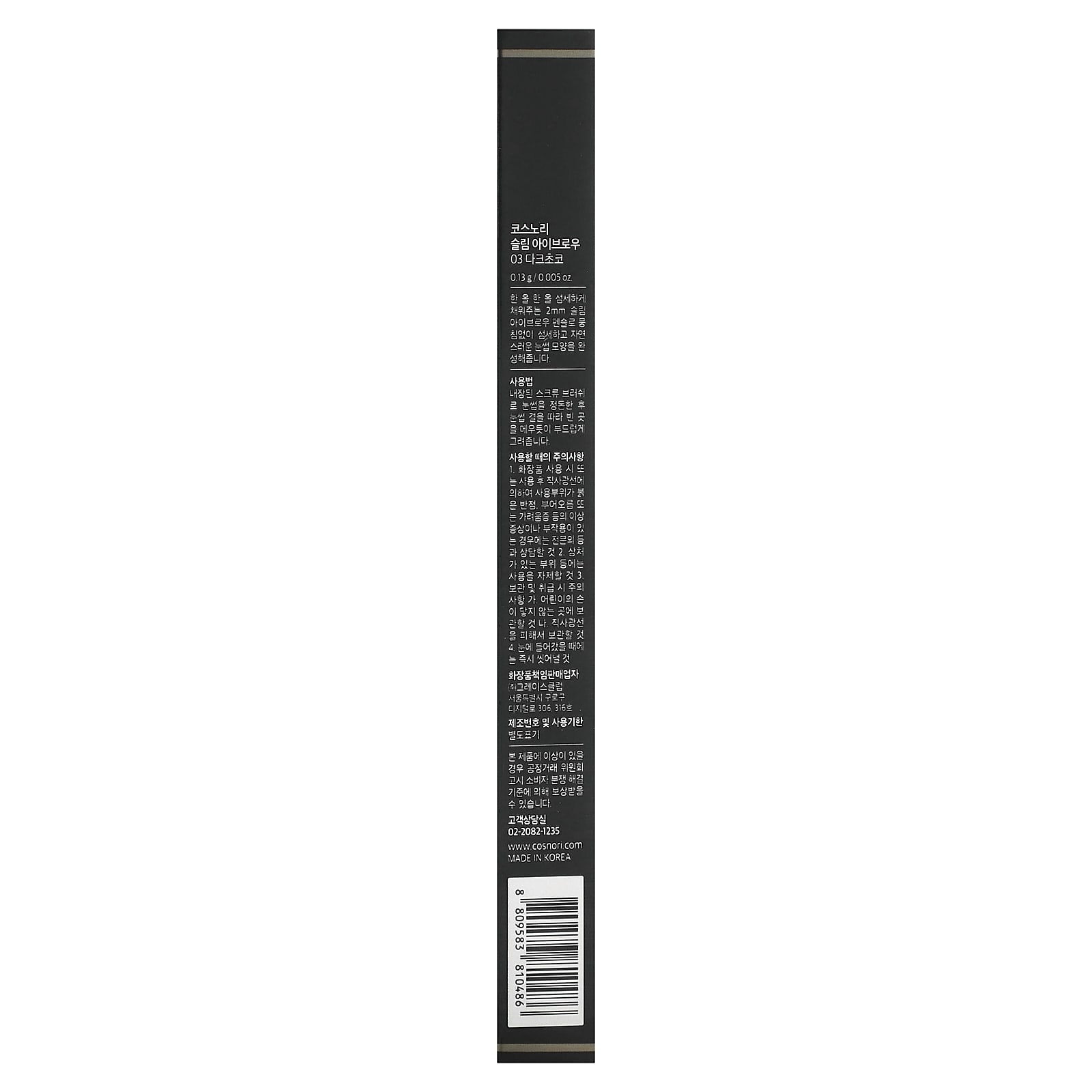 Cosnori Lápis para Sobrancelhas Slim 03 Chocolate Amargo 013 g (0005 oz) – Cosnori Beleza Maquiagem Olhos Sobrancelhas K-Beauty para Sobrancelhas.