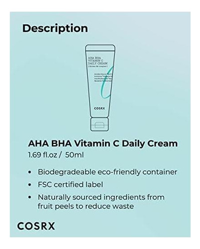 Cosrx Aha Bha Vitamina C Creme Diário 169 Fl. Oz 50 Ml Cre