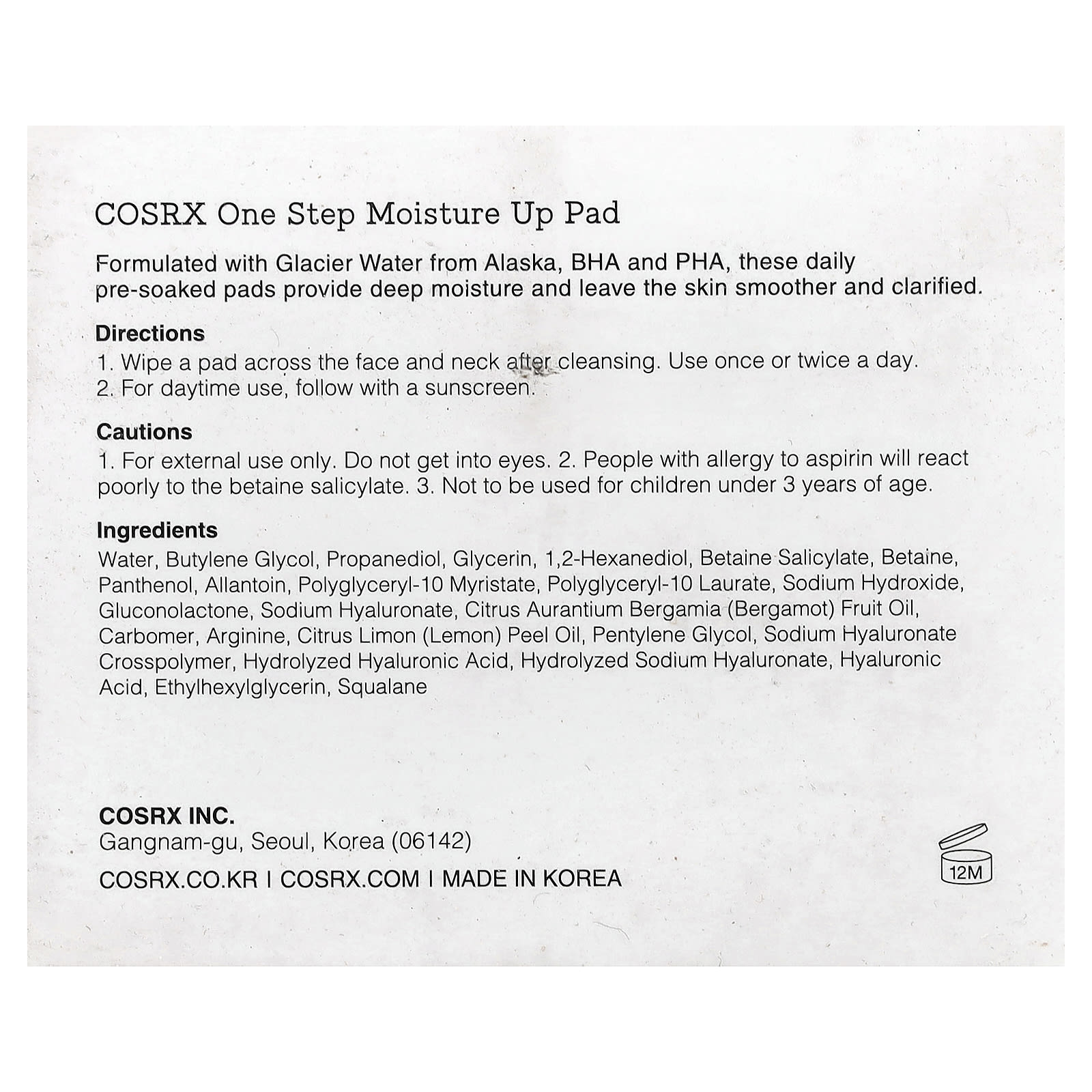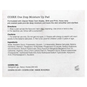 CosRx Disco de Algodão One Step Moisture Up 70 Discos 140 ml (473 fl oz) – CosRx Beleza Limpeza Facial Loções tônicas Tônicos faciais K-Beauty Discos de tônico K-Beauty.