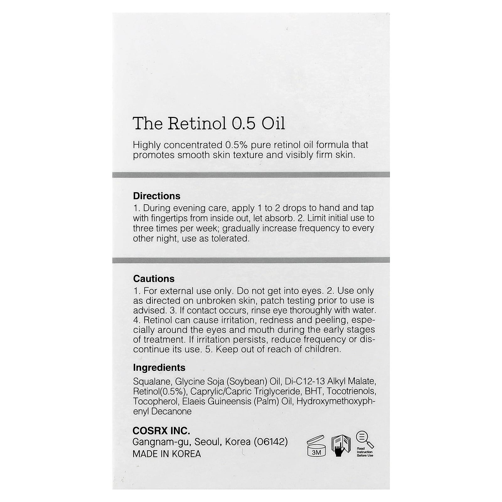 CosRx O Óleo de Retinol 050 067 fl oz (20 ml) – CosRx Beleza Tratamentos e Séruns Séruns Faciais Séruns Antienvelhecimento e Firmadores Séruns antienvelhecimento e firmadores K-Beauty.