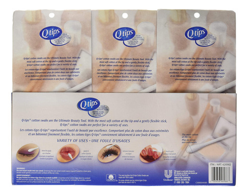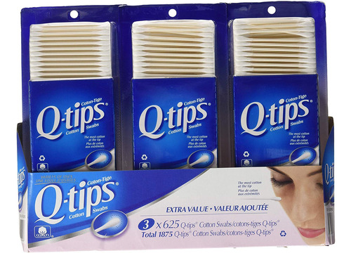 3 cotonetes de algodão Q-Tips, 625 ct – O país de origem são os Estados Unidos – A dimensão da embalagem do produto é 6,4 cmL x 25 cmL x 30 cmH – O peso da embalagem do produto é 2,2 libras