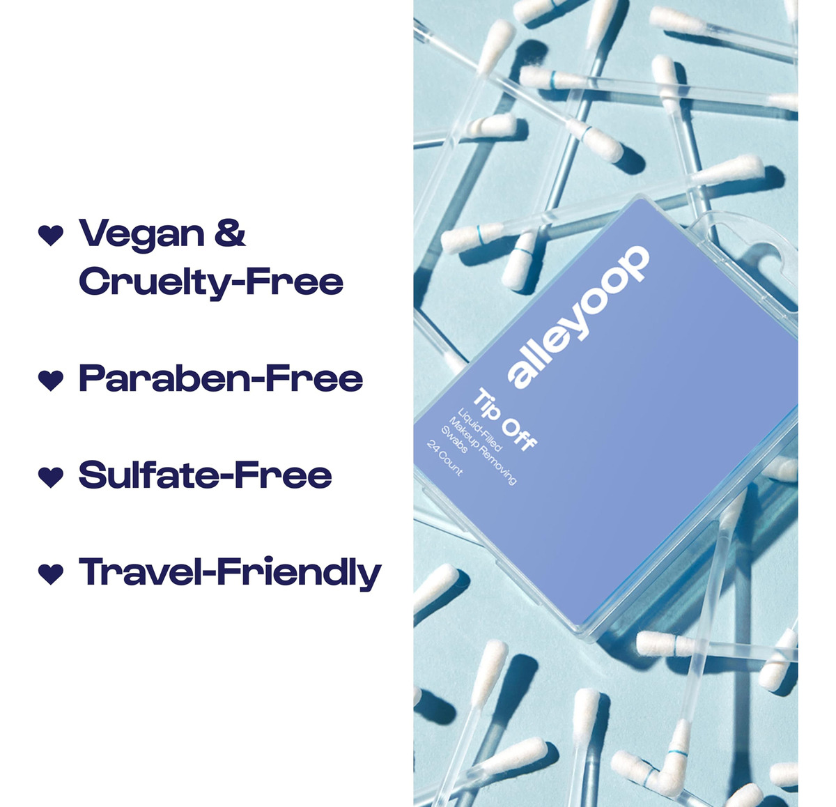 Nossos cotonetes cheios de líquido resolvem seus problemas de maquiagem em qualquer lugar. Encaixe a ponta para liberar o líquido e depois limpe manchas, escamas e rímel da noite passada. – Corrija os problemas de maquiagem rapidamente: esses toalhetes removedores de maquiagem inovadores e cheios de líquido foram projetados para corrigir rapidamente os problemas de maquiagem sem perder tempo no dia ou espaço na bolsa. Basta apertar a ponta para liberar o líquido e, em seguida, remover quaisquer manchas ou erros – Projetado para ser preciso: cada cotonete é pequeno o suficiente para remover com precisão o delineador que ficou solto ou o rímel que tem uma mente própria sem estragar o resto da aparência. – Suave e eficaz: formulado com aloe vera para acalmar e acalmar, ao mesmo tempo em que é poderoso o suficiente para remover até mesmo os produtos à prova d'água mais persistentes. – Uma fórmula para se sentir bem: o Tip Off é vegano, livre de crueldade, sem parabenos, sem sulfato e aprovado pela TSA. – Produtos que fazem mais do que você também pode: todos Os produtos Alleyoop são projetados para ajudar você a passar menos tempo na frente de um espelho e mais tempo em todo o resto. Todos eles são fáceis, eficazes e multifuncionais, para que você possa carregar menos, usar menos e ainda obter os mesmos resultados.