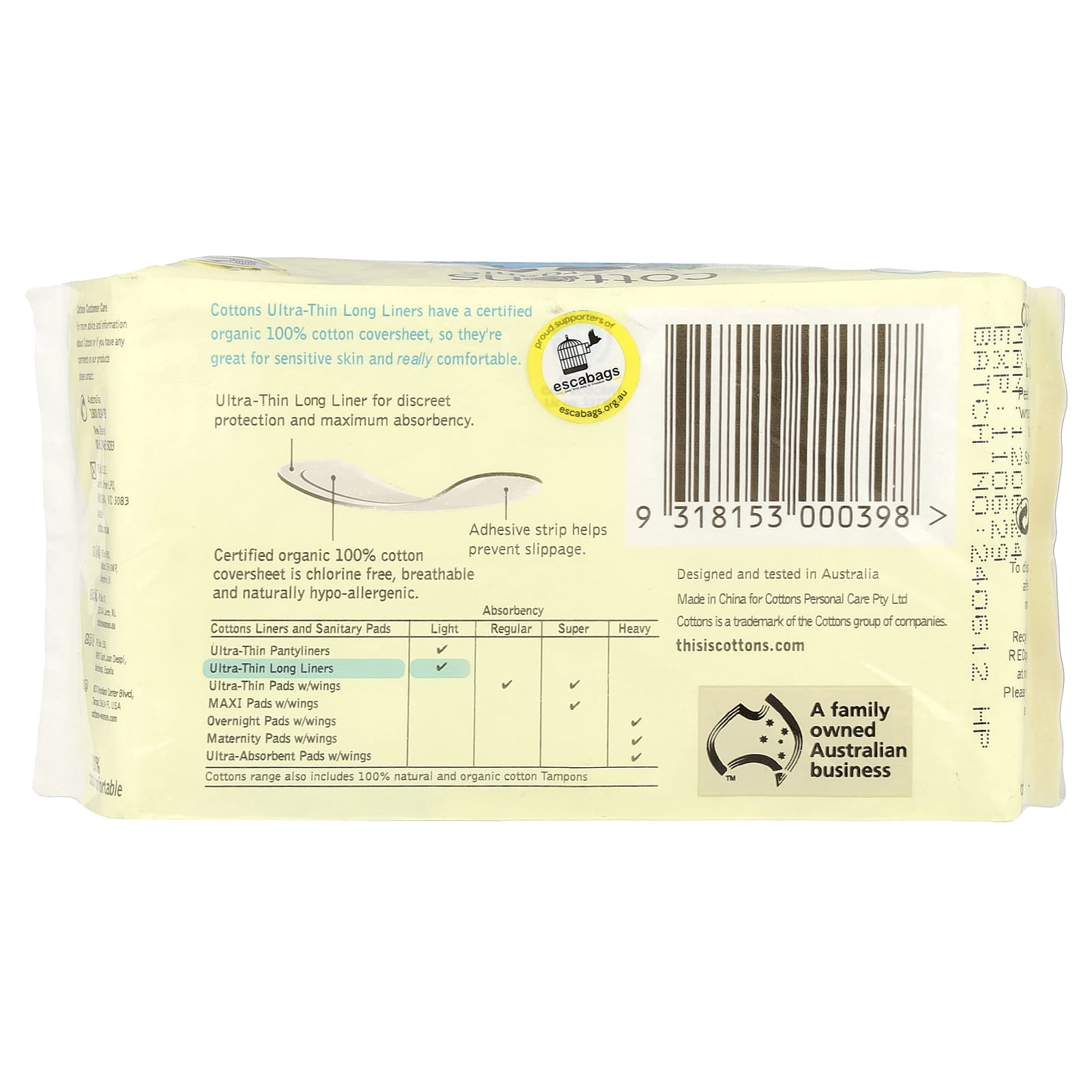 Os Protetores Longos Ultrafinos da Cottons têm uma cobertura de 100% algodão orgânico certificado, por isso são ótimos para peles sensíveis e são muito confortáveis.