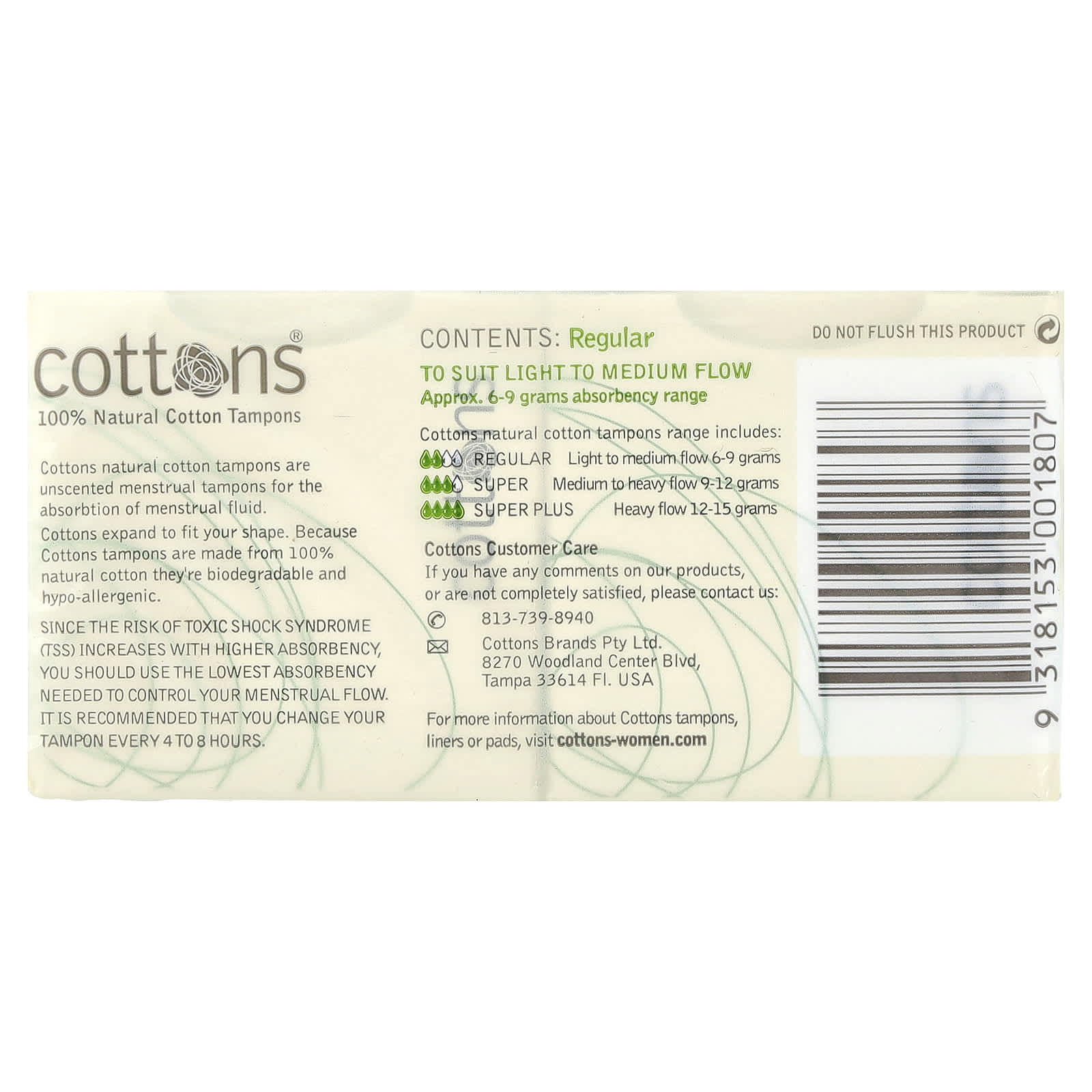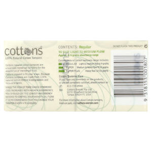 Os absorventes internos de algodão natural da Cottons são absorventes internos sem perfume para a absorção do fluido menstrual.