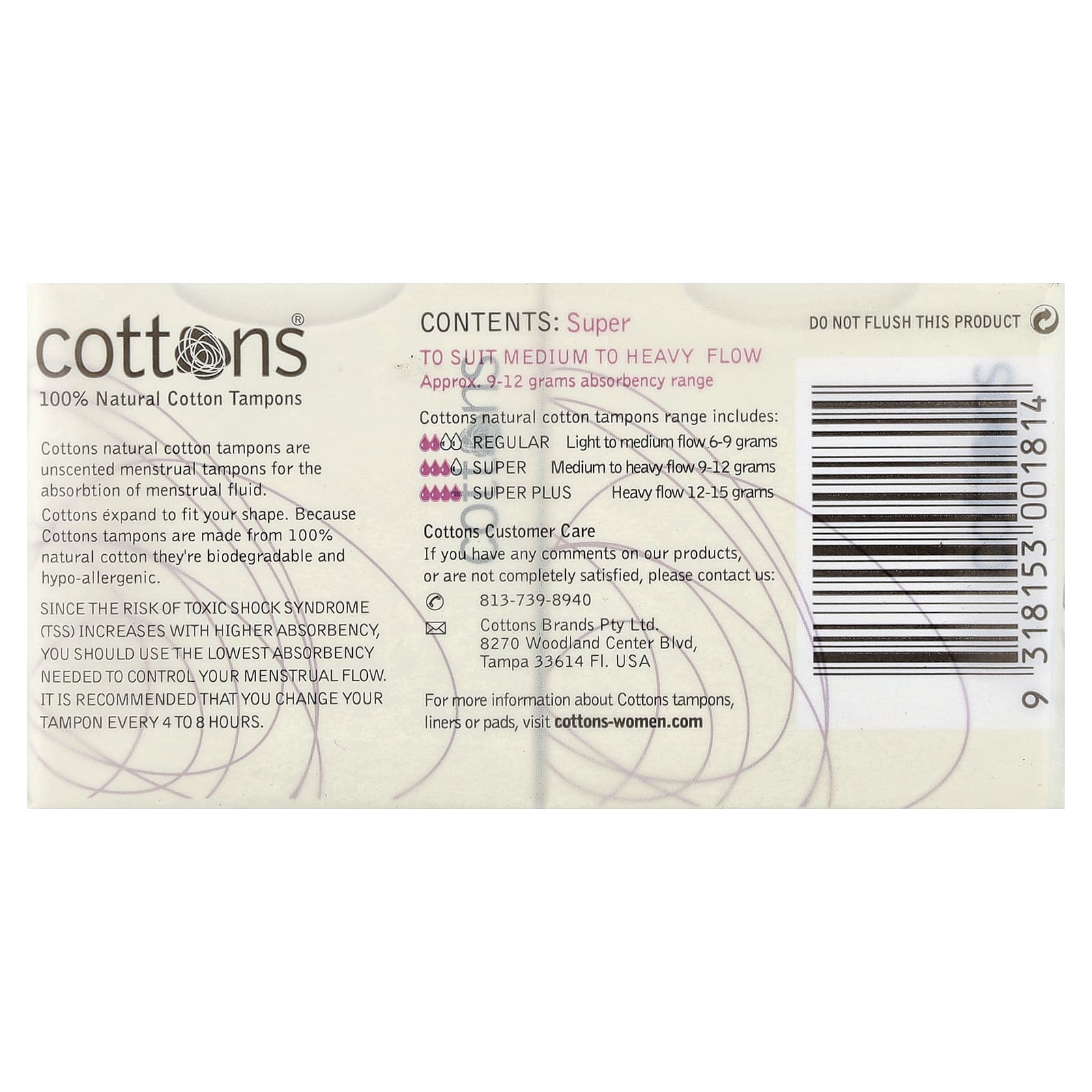 Os absorventes internos de algodão natural da Cottons são absorventes internos sem perfume para a absorção do fluido menstrual.