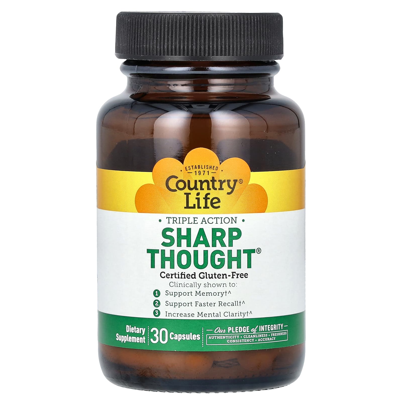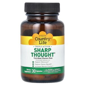 Country Life Ação Tripla Sharp Thought 30 Cápsulas – Country Life Suplementos Cérebro e Cognição Fórmulas para Foco e Memória.