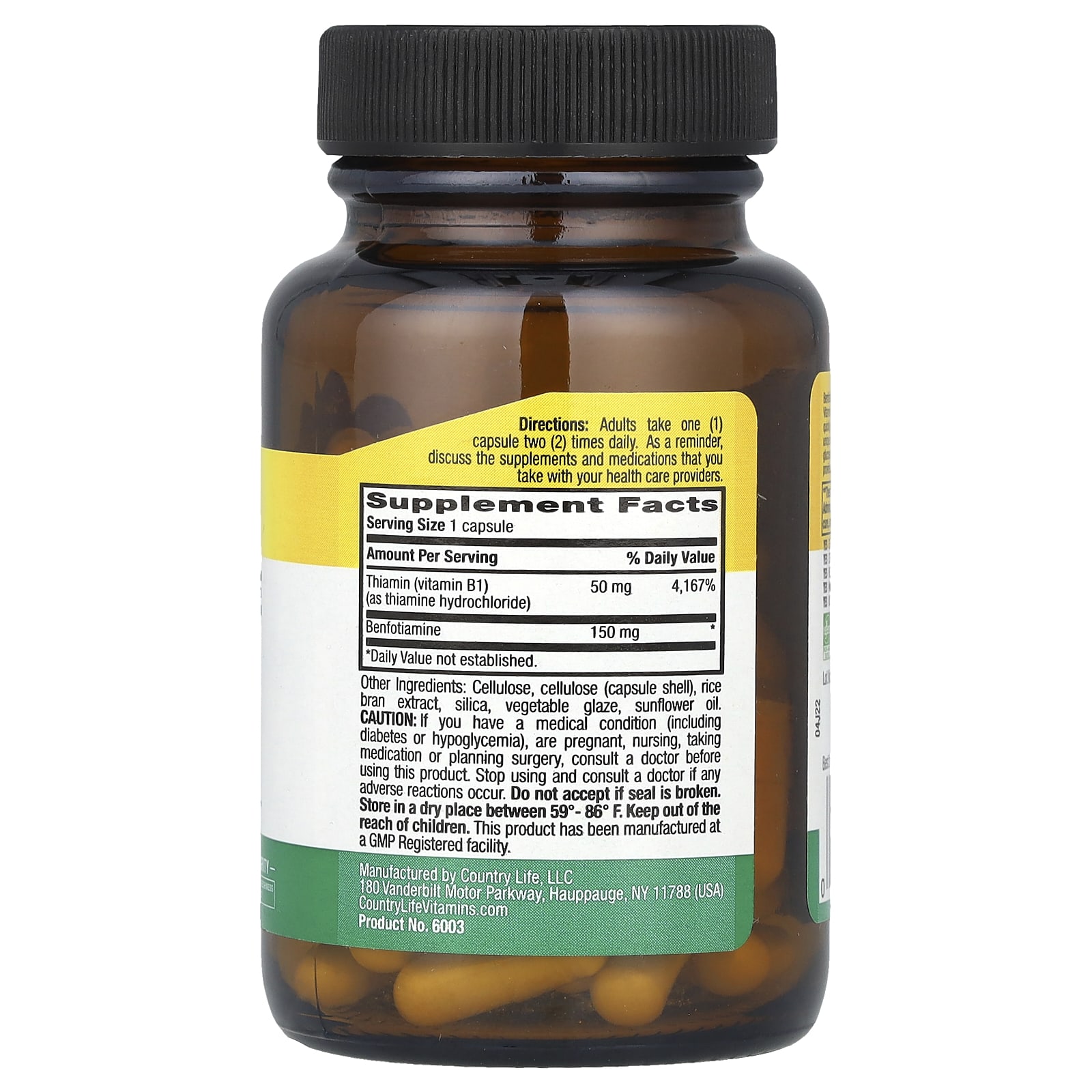 Country Life Benfotiamina com Tiamina 150 mg 60 Cápsulas Veganas – Country Life Suplementos Antioxidantes Benfotiamina.