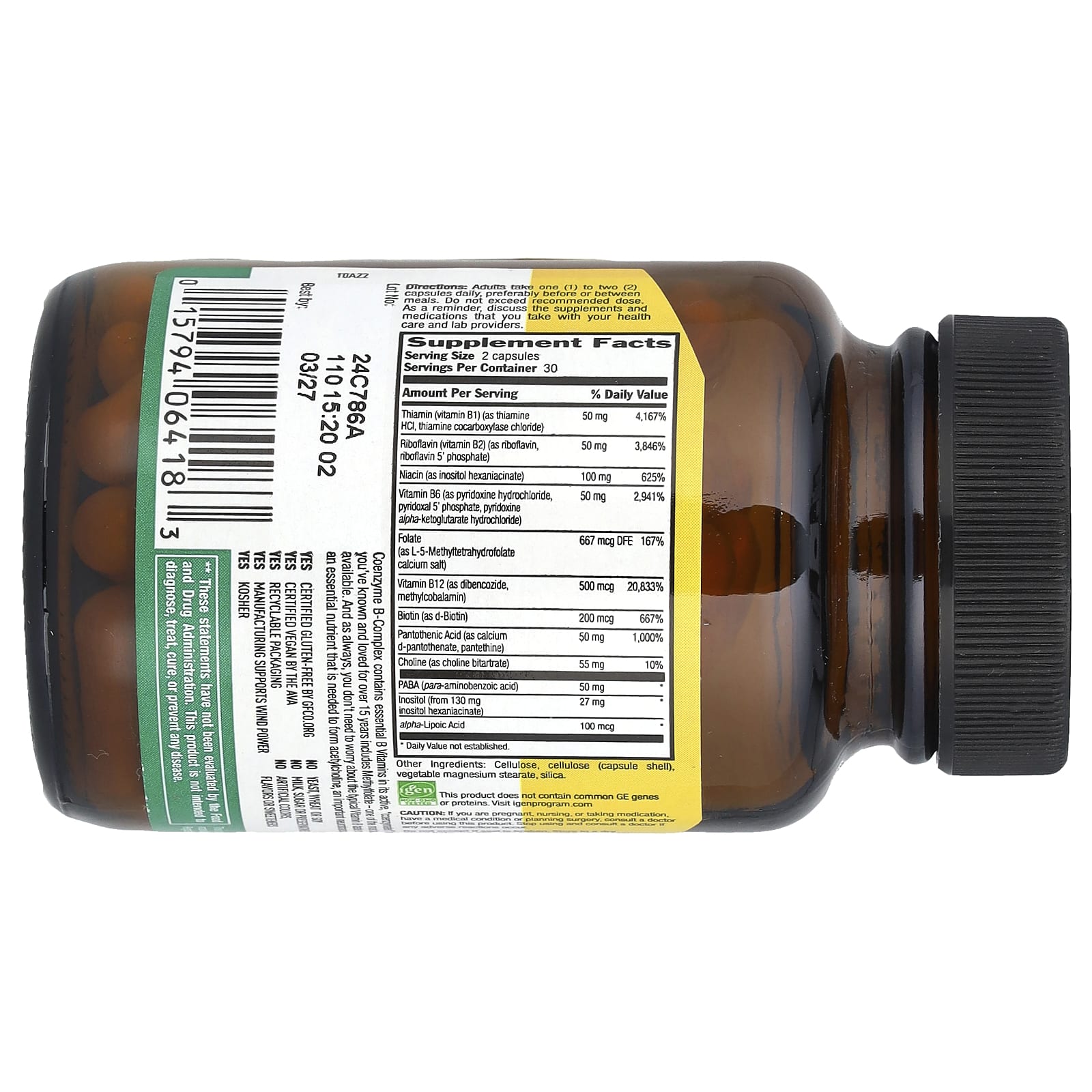 Country Life Cápsulas de Coenzima do Complexo B 60 Cápsulas Vegetarianas – Country Life Suplementos Vitaminas Vitamina B Complexo de Vitaminas B.