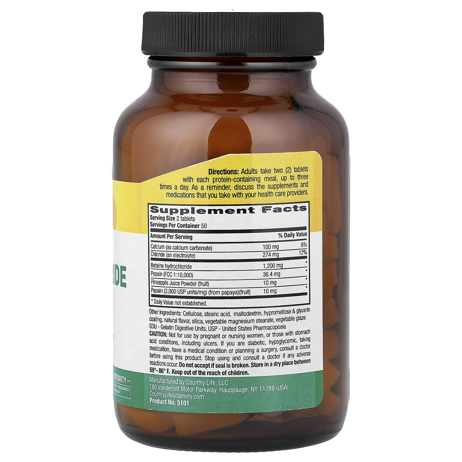 Country Life Cloridrato de Betaína com Pepsina 100 Comprimidos – Country Life Suplementos Saúde Intestinal Cloridrato de Betaína.