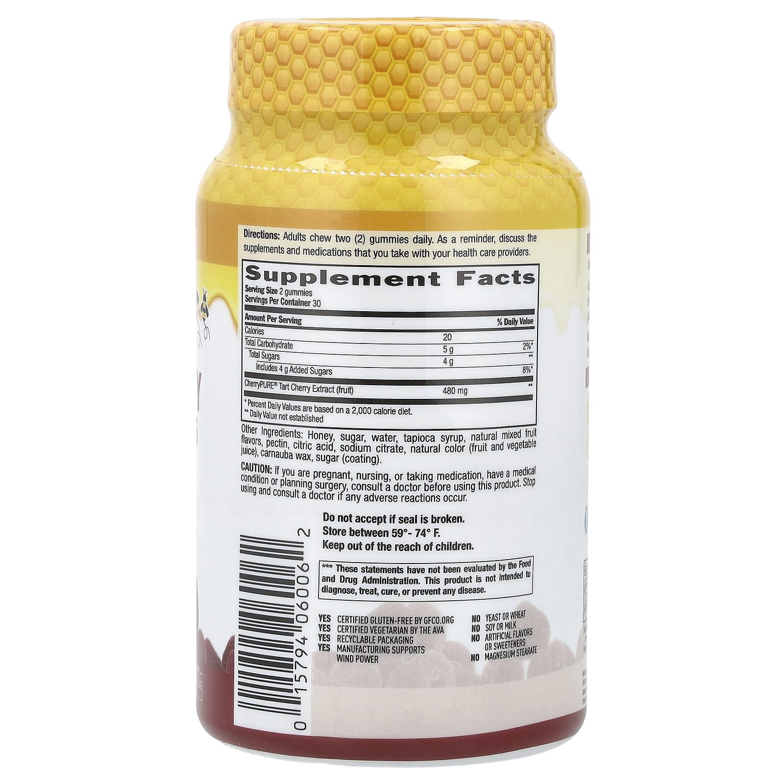 Country Life Gomas de Mel e Cereja Azeda Mistura de Frutos Silvestres Naturais 60 Gomas (240 mg por Goma) – Country Life Suplementos Antioxidantes Cereja Azeda e Cereja Preta.