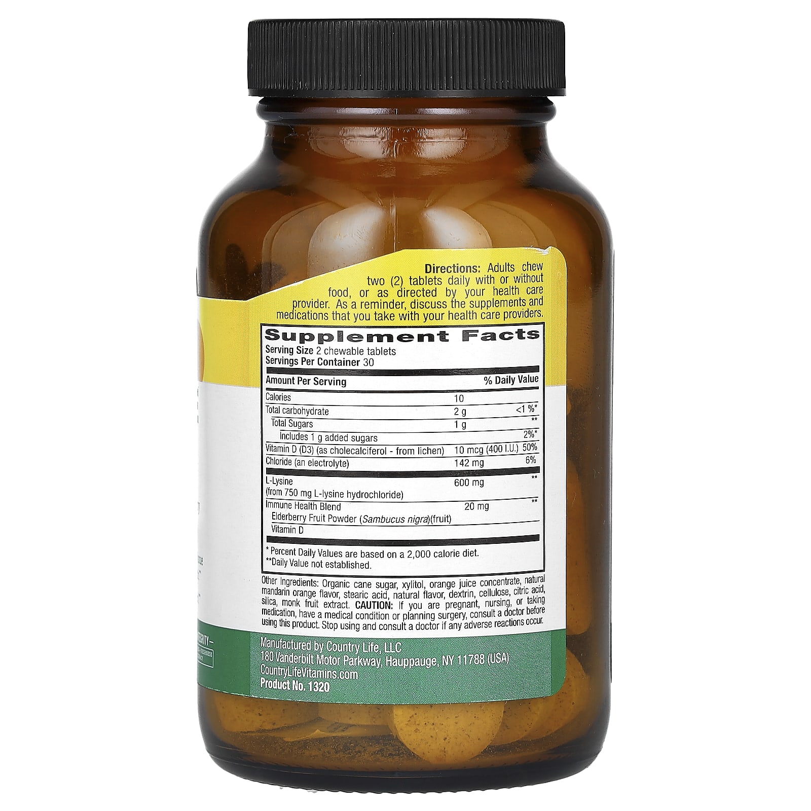 Country Life, L-Lisina Mastigável com Vitamina D e Sabugueiro, Toque de Laranja Picante, 60 Comprimidos Mastigáveis – Country Life Suplementos Aminoácidos Lisina.