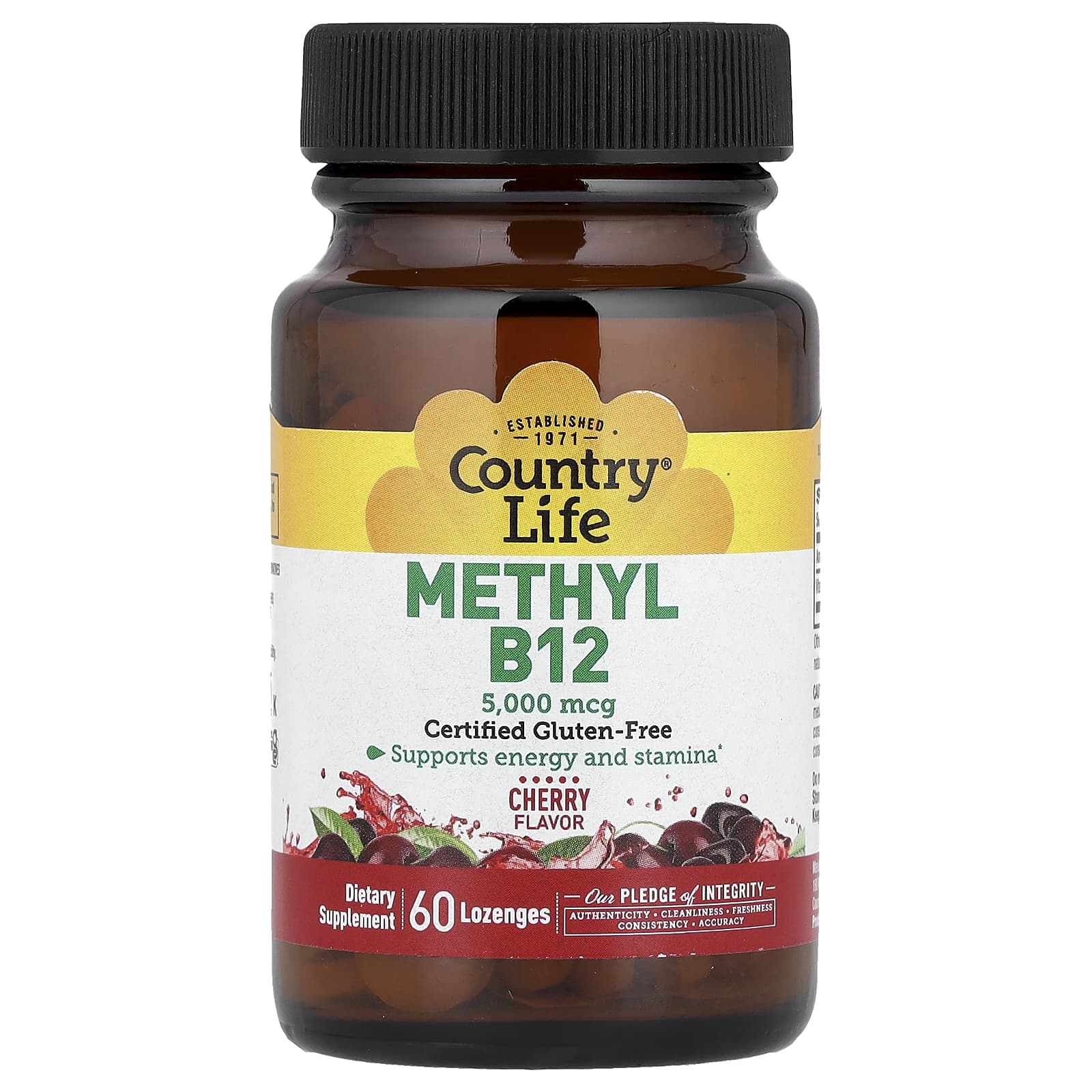 Country Life Metil B12 Cereja 5.000 mcg 60 Pastilhas – Country Life Suplementos Vitaminas Vitamina B Vitamina B12 (Cobalamina).