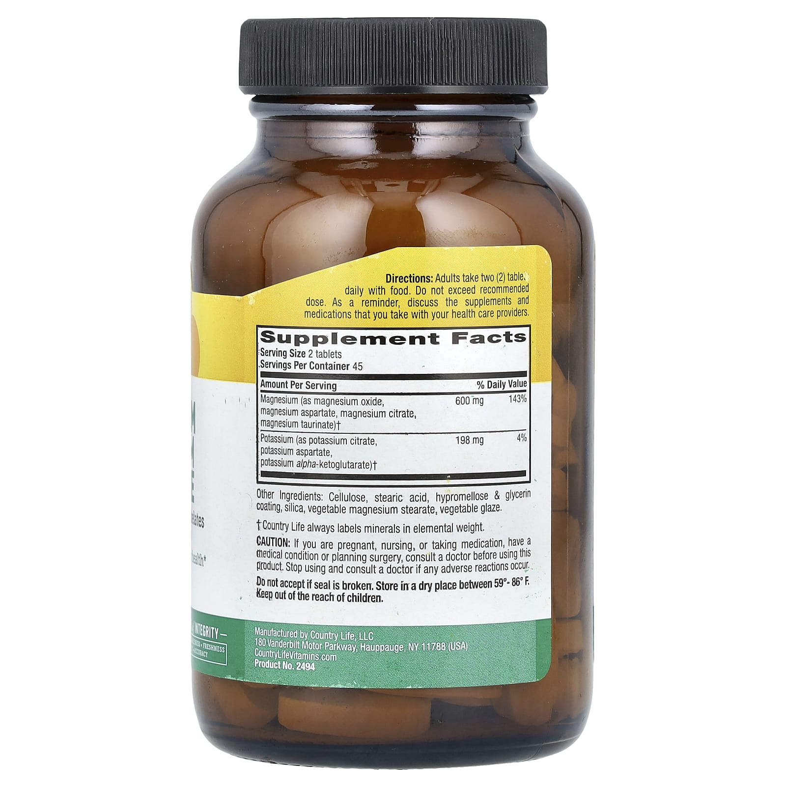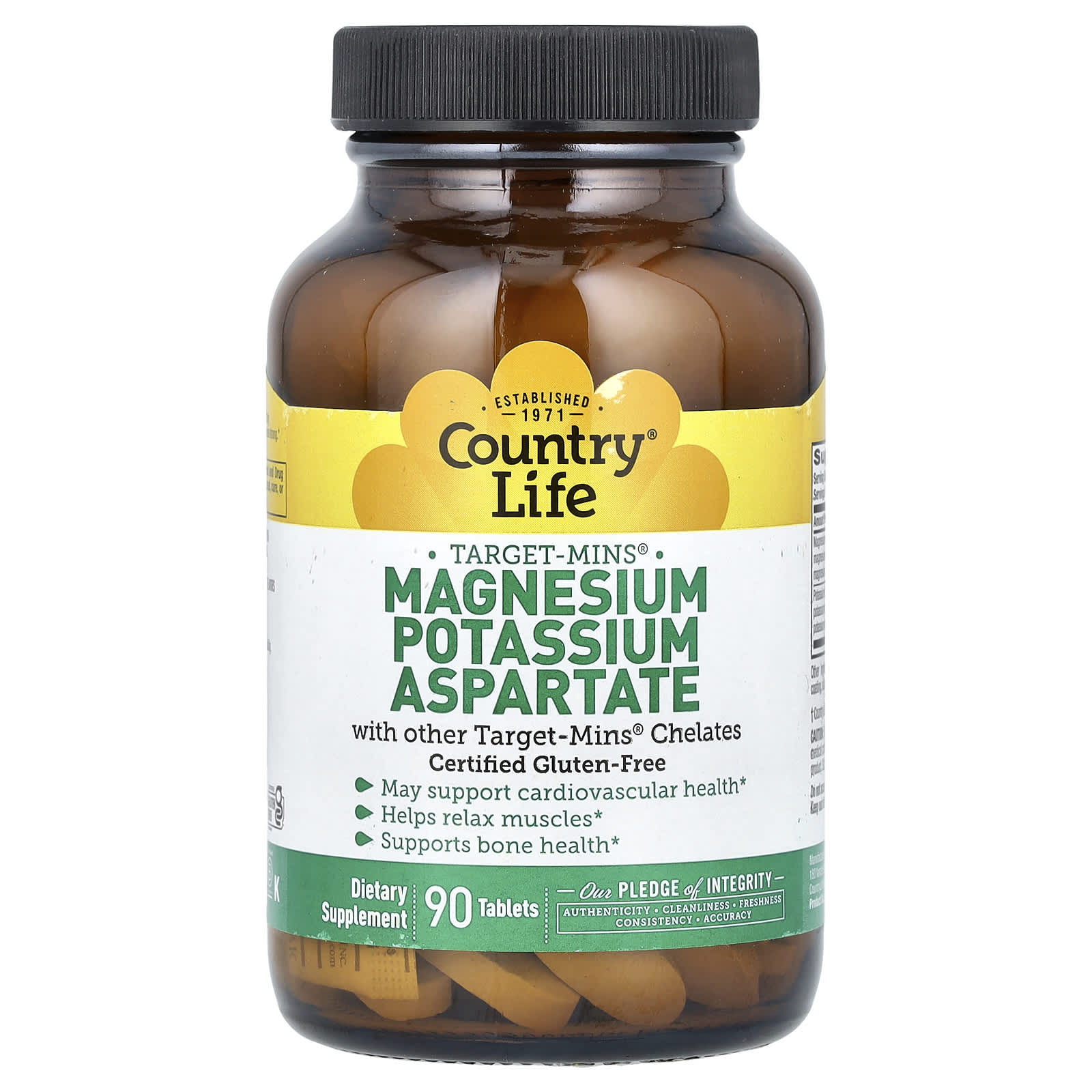 Country Life Minúsculas Alvo Magnésio Potássio Aspartato 90 Comprimidos – Country Life Suplementos Minerais Magnésio Potássio.