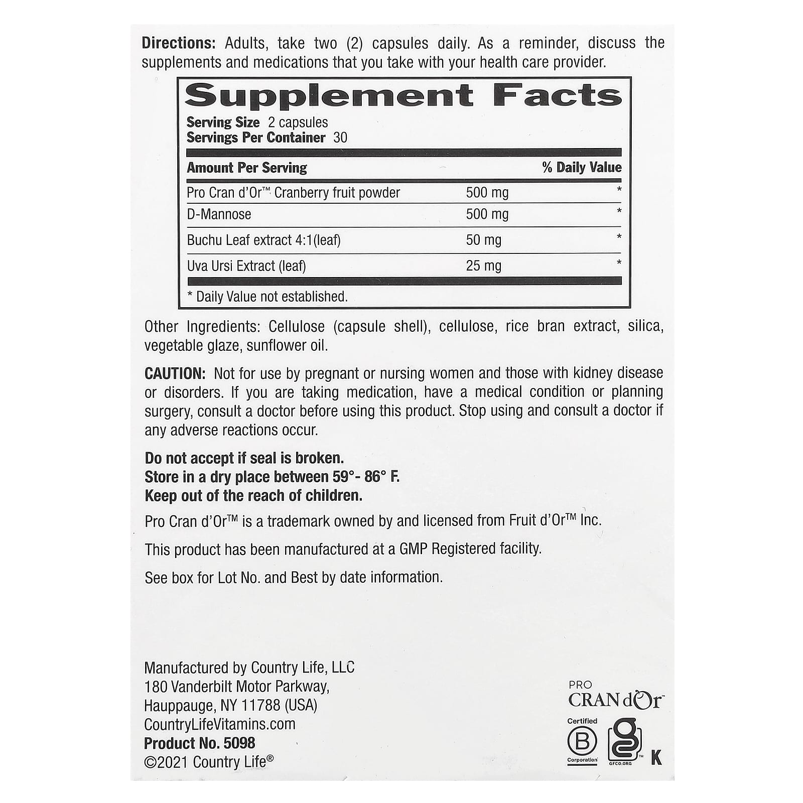 • Formulado com cranberry em pó Pro Cran d’Or™, usando 100% de cranberry inteiro, sem excipientes ou aditivos.