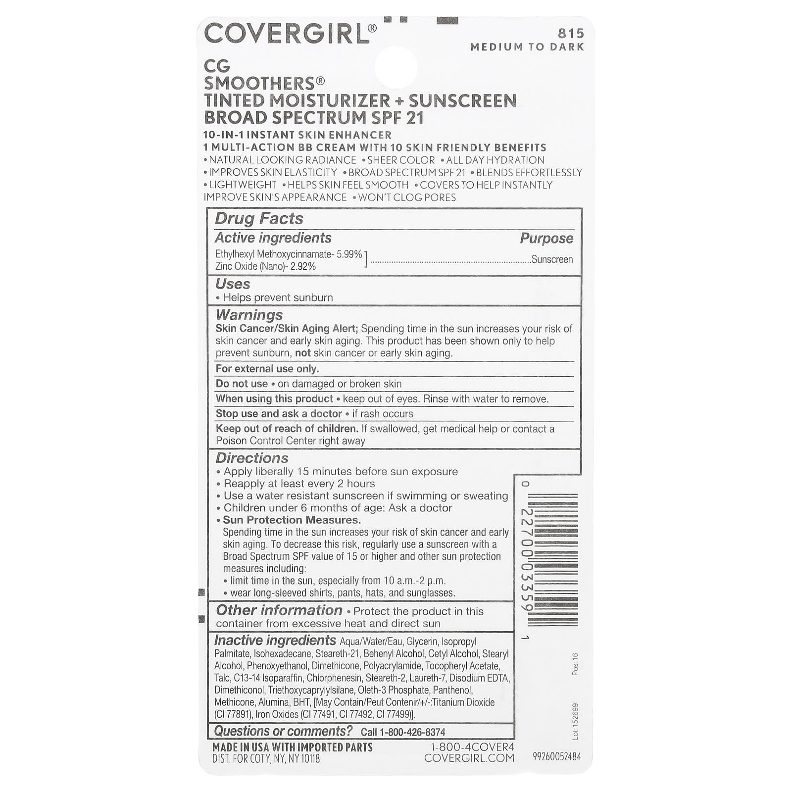 Covergirl CG Smoothers Creme BB FPS 21 Médio a Escuro 815 40 ml (135 fl oz) – Covergirl Beleza Maquiagem Rosto Cremes BB e CC.