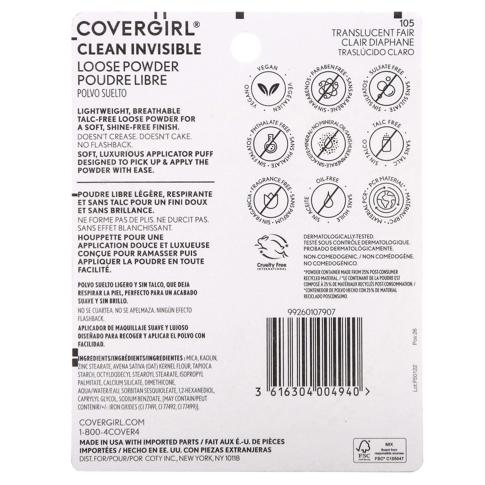Covergirl Clean Invisible Pó Solto 105 Translúcido Claro 18 g (063 oz) – Covergirl Beleza Maquiagem Rosto Spray e Pó Fixador.