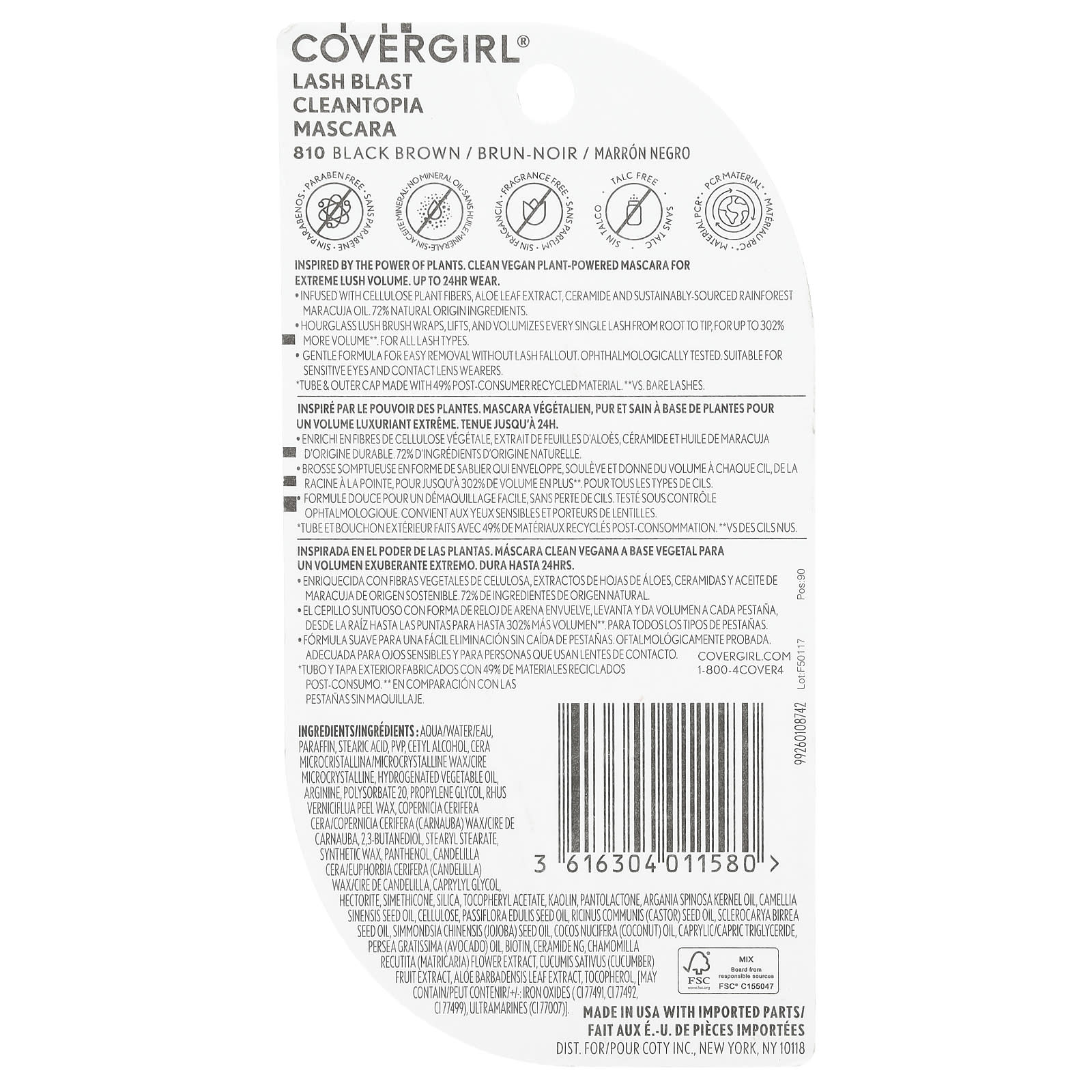 Covergirl Lash Blast Máscara de Cílios Cleantopia Castanho Escuro 810 95 ml (032 fl oz) – Covergirl Beleza Maquiagem Olhos Máscara de Cílios.