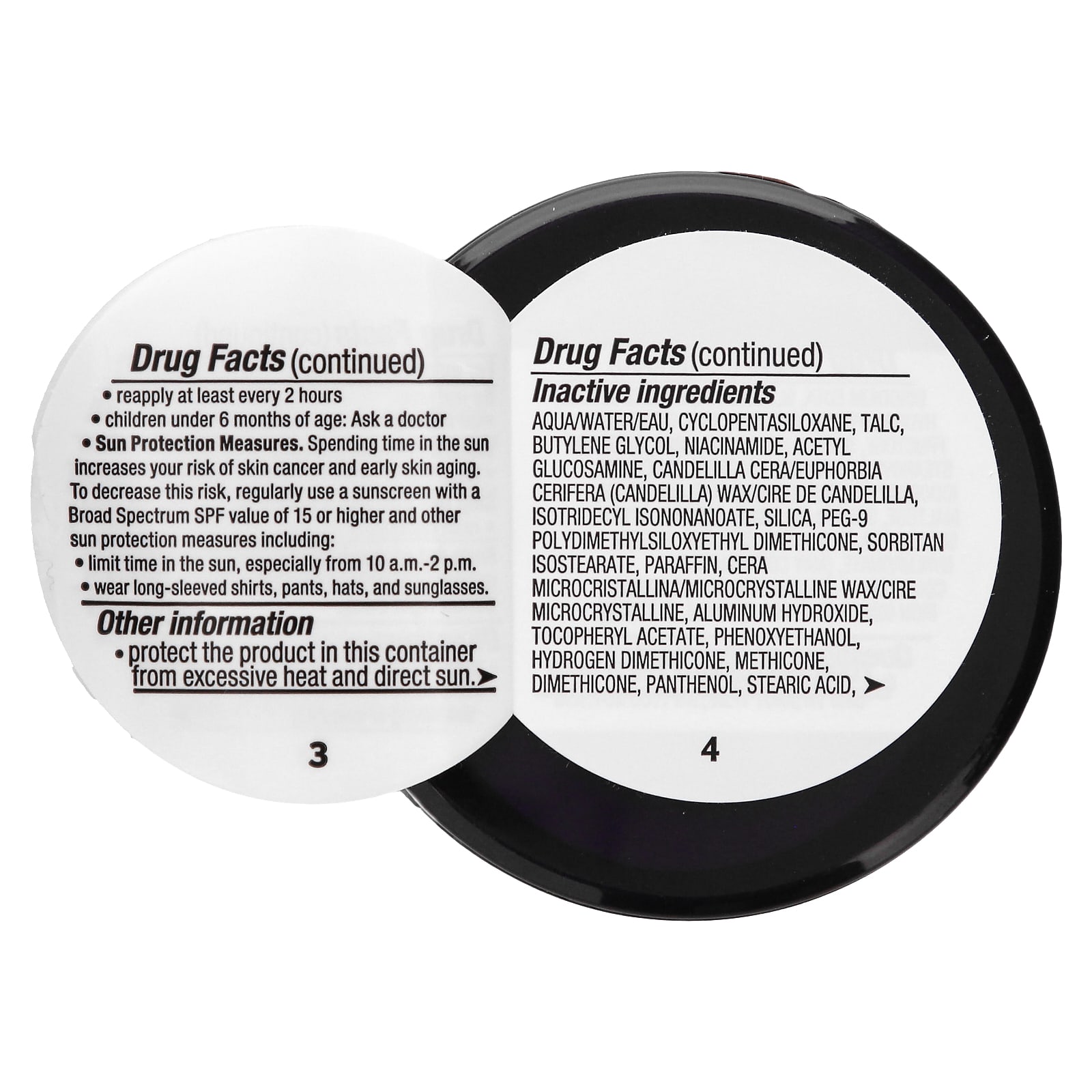 | Ingredientes inativos Aqua/água/eau, decametilciclopentasiloxano, talco, butilenoglicol, nicotinamida, acetilglucosamina, cera de candelilla/cera de Euphorbia cerifera (candelilla)/cire de candelilla, isotridecyl isononanoate, dióxido de silício, peg-9 polydimethylsiloxyethyl dimethicone, sorbitan isostearate, parafina, cera microcristallina /cera microcristalina/cire microcristalina, hidróxido de alumínio, acetato de tocoferol, fenoxietanol, hydrogen dimethicone, methicone, dimeticona, pantenol, ácido esteárico, edetato dissódico, glicerina, pentilenoglicol, hidroxipropilciclodextrina, ácido cítrico, frutose, hidróxido de sódio, ureia, disodium stearoyl glutamato, ascorbyl glucoside, iodopropynyl butylcarbamate, alantoína, maltose, cloreto de sódio, lactato de sódio, pidolato de sódio, trealose, glicose, hialuronato de sódio, [pode conter/peut contenir/+/-: dióxido de titânio (CI 77891), óxidos de ferro (CI 77491, CI 77492, CI 77499)]. |