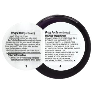 | Ingredientes Inativos: Água, decametilciclopentasiloxano, talco, butilenoglicol, nicotinamida, acetilglucosamina, cera de candelilla/cera de Euphorbia cerifera (candelilla), isononanoato de isotridecil, dióxido de silício, polydimethylsiloxyethyl dimethicone peg-9, isostearato de sorbitano, parafina, cera microcristallina/cera microcristalina/cire microcristalina, alumínio hidróxido, acetato de tocoferol, fenoxietanol, hydrogen dimethicone, methicone, dimethicone, pantenol, ácido esteárico, edetato dissódico, glicerina, pentilenoglicol, hidroxipropilciclodextrina, ácido cítrico, frutose, sodium hydroxide, urea, Disodium stearoyl glutamate, ascorbyl glucoside, iodopropynyl butylcarbamate, alantoína, maltose, cloreto de sódio, lactato de sódio, pidolato de sódio, trealose, glicose, hialuronato de sódio Pode conter+/-: Dióxido de titânio (CI 77891), óxidos de ferro (CI 77491, CI 77492, CI 77499). Fabricado nos EUA com peças estrangeiras. |