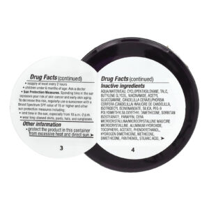 | Ingredientes Inativos: Água, decametilciclopentasiloxano, talco, butilenoglicol, nicotinamida, acetilglucosamina, cera de candelilla/cera de Euphorbia cerifera (candelilla)/cire de candelilla, isotridecyl isononanoate, dióxido de silício, peg-9 polydimethylsiloxyethyl dimethicone, sorbitan isostearate, parafina, cera microcristallina/cera microcristalina/ cire microcristalina, hidróxido de alumínio, acetato de tocoferol, fenoxietanol, hydrogen dimethicone, methicone, dimeticona, pantenol, ácido esteárico, edetato dissódico, glicerina, pentilenoglicol, hidroxipropilciclodextrina, ácido cítrico, frutose, hidróxido de sódio, ureia, disodium stearoyl glutamate, ascorbyl glucoside , iodopropynyl butylcarbamate, alantoína, maltose, cloreto de sódio, lactato de sódio, pidolato de sódio, trealose, glicose, hialuronato de sódio. Pode conter +/-: Dióxido de titânio (CI 77891), óxidos de ferro (CI 77491, CI 77492, CI 77499) Fabricado nos EUA com partes estrangeiras. |