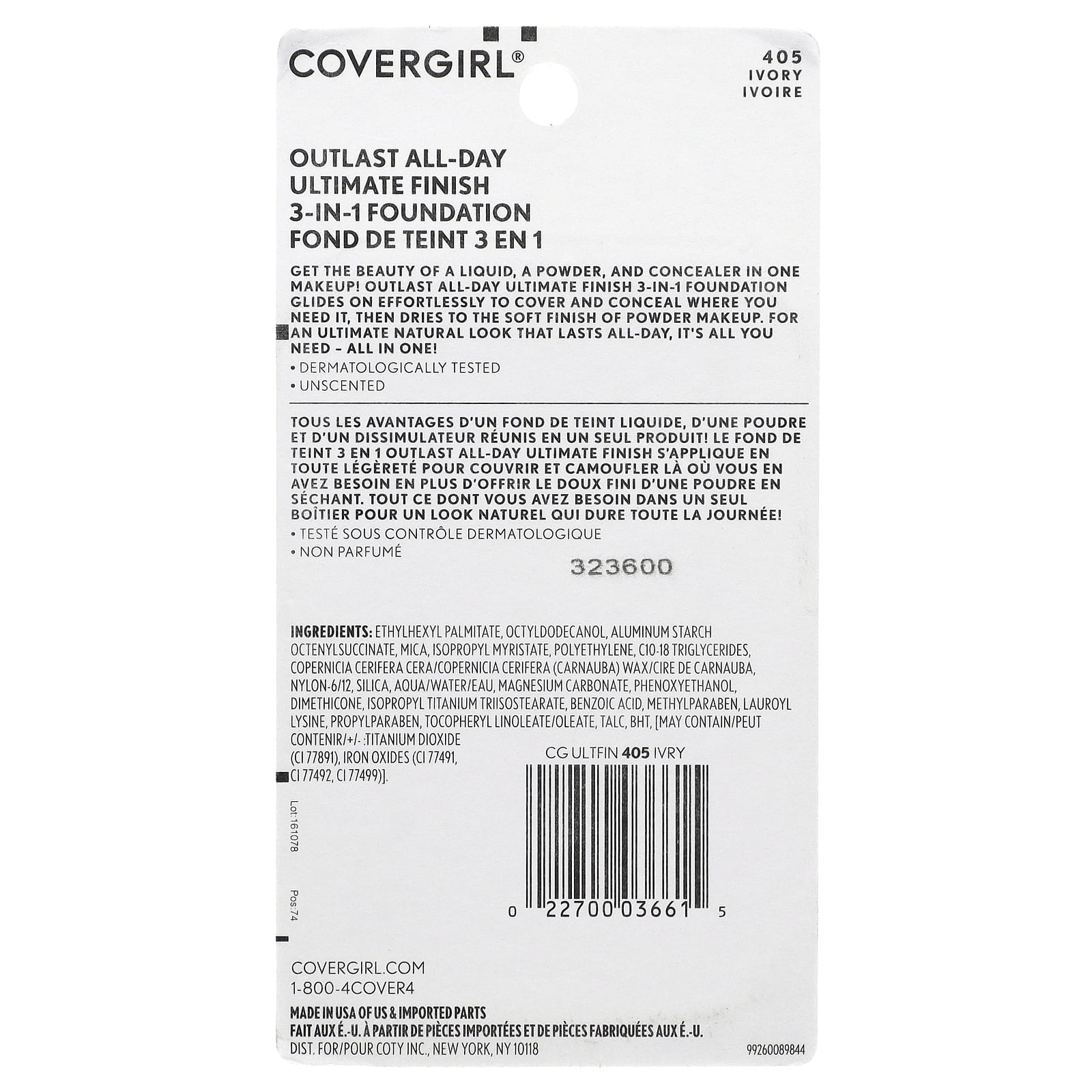 Covergirl Outlast All-Day Ultimate Base 3 em 1 405 Ivory 11 g (04 oz) – Covergirl Beleza Maquiagem Rosto Base.