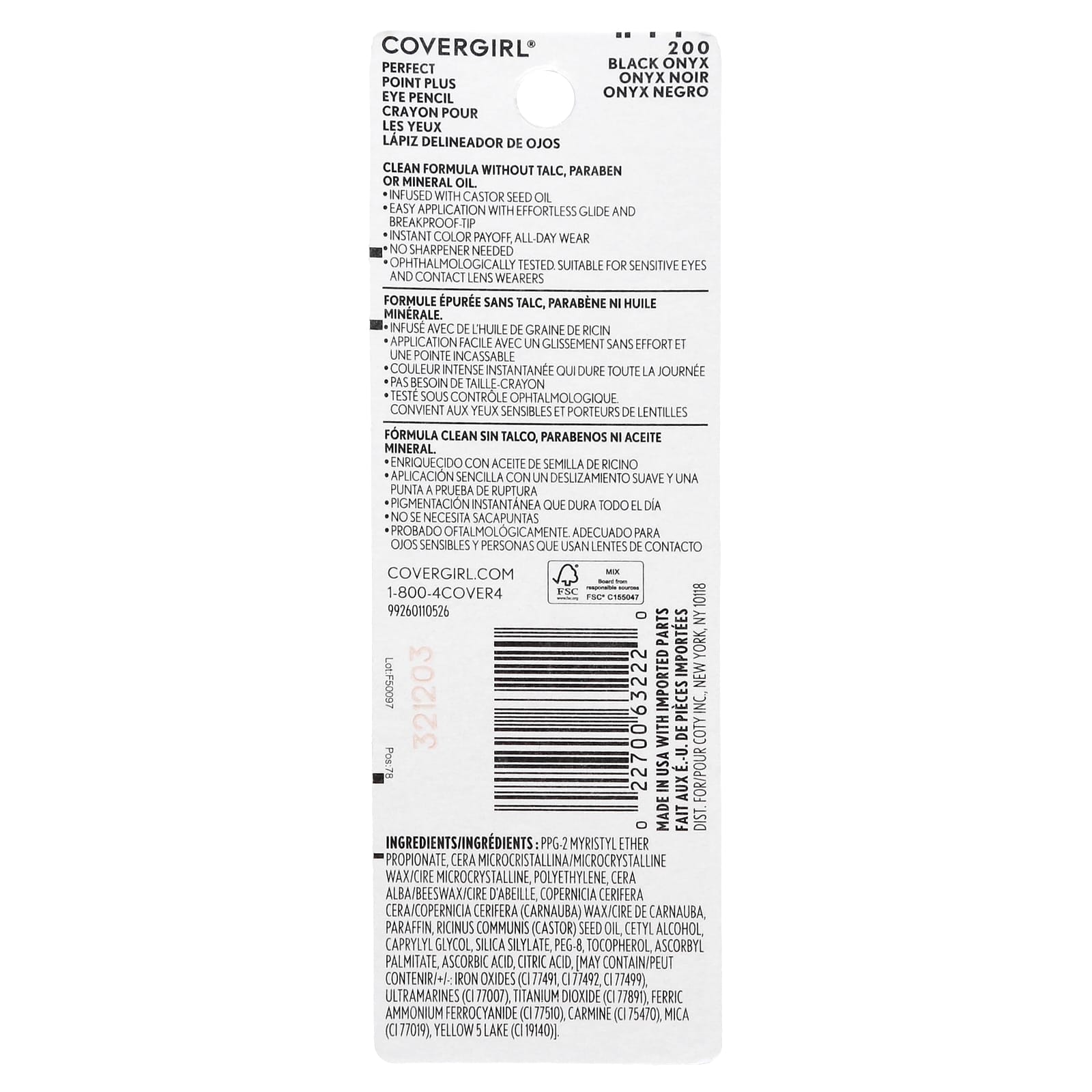 Covergirl Perfect Point Plus Lápis para a Área dos Olhos 200 Black Onyx 023 g (0008 oz) – Covergirl Beleza Maquiagem Olhos Delineador de olhos.