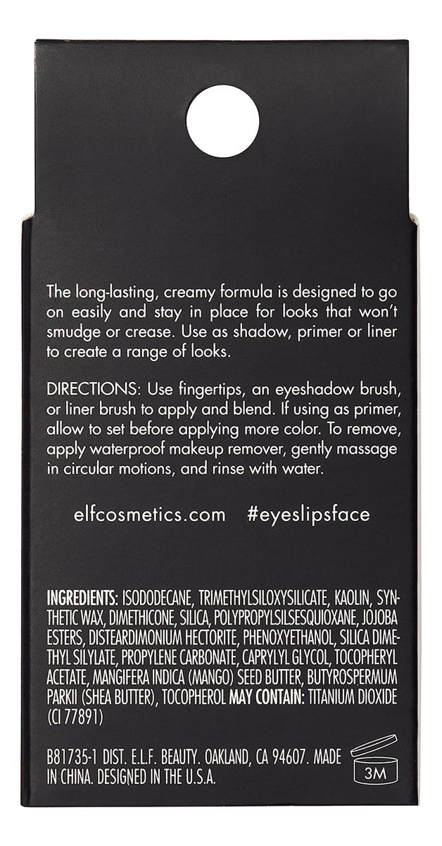 Sombra e.l.f. No Budge Cream, sombra 3 em 1, primer e delineador com cor resistente a rugas e poder de permanência, vegana e livre de crueldade, Wispy Cloud — maquiagem 3 em 1 para os olhos: a maior ameaça tripla: essa sombra cremosa, primer e delineador de olhos 3 em 1 oferecem cores ricamente pigmentadas que não se movem, borram ou vinco. – FÁCIL DE APLICAR: A fórmula aveludada e montável para os olhos passa facilmente pelas pálpebras com a ponta dos dedos, pincel ou pincel delineador. – FÓRMULA MONTÁVEL: nunca foi tão fácil criar uma variedade de looks e preparar suas pálpebras para criar a cor desejada e fixar na sua aparência. Disponível em 8 cores duradouras que variam do essencial ao vibrante. – COMO USAR: Use as pontas dos dedos, um pincel de sombra ou um pincel delineador para aplicar e misturar. Se usar como primer, deixe endurecer antes de aplicar mais cor. – INGREDIENTES QUE ADORAM A PELE: Todos os produtos da e.l.f. são feitos com os ingredientes que você deseja, menos as toxinas que você não contém a preços bons para você. Todos os produtos da e.l.f. são 100% veganos, livres de crueldade e certificados pela Leaping Bunny.
