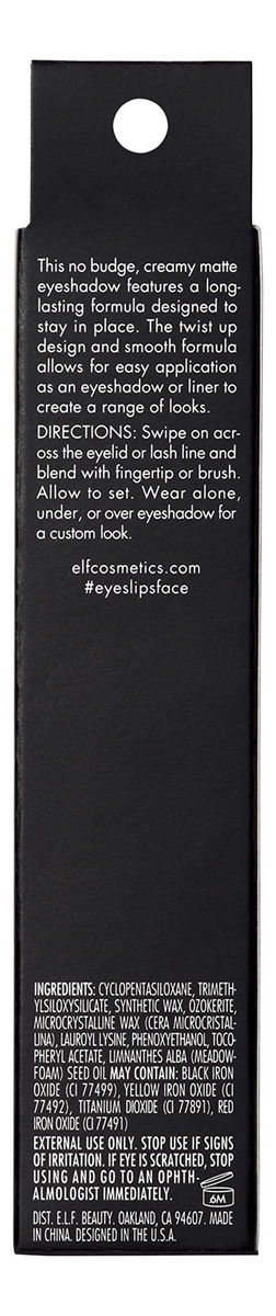 e.l.f. No Budge Matte Shadow Stick, One-Swipe Cream Eyeshadow Stick, Long-Wear & Crease Resistant, Matte Finish, Groovy – EYESHADOW WITH MATTE FINISH: Your favorite easy-to-use No Budge Shadow Sticks are now available in a matte finish! Play up your eyes with a new range of eight highly pigmented, far-out shades inspired by the 70s. – CREAMY, BUILDABLE FORMULA: The buildable, creamy formula glides on effortlessly as a matte eyeshadow or eyeliner and allows you to create a range of looks with essential to vibrant shades. – LONG-LASTING COLOR: The e.l.f. No Budge Matte Eyeshadow Sticks feature the same stay-put power you know and love. – EASY TO APPLY: The twist-up design offers easy application while the convenient built-in sharpener keeps your precision point sharp. – SKIN-LOVING INGREDIENTS: All e.l.f. products are made from skin-loving ingredients you want, minus the toxins you dontall at good-for-you prices. All e.l.f. products are 100% vegan, cruelty-free, and leaping bunny certified.