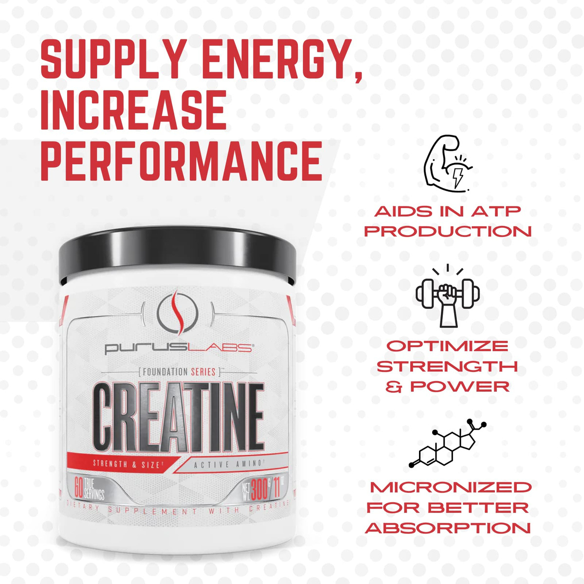 Creatina em pó da série Purus Labs Foundation | Creatina micronizada 100% ultrapura para força, massa, potência e recuperação | 60 porções (sem sabor) – AUMENTE A FORÇA E O TAMANHO – A creatina monohidratada é usada na indústria de fitness para construir músculos, melhorar o desempenho e aumentar a força. – MELHORAR O DESEMPENHO ATLÉTICO – A creatina deve ser usada por qualquer pessoa que queira otimizar o desempenho. Os suplementos de creatina também são benéficos para aumentar os níveis de energia, acelerar os tempos de recuperação e melhorar o desempenho em treinos de alta intensidade. – Apoiada pela ciência – A creatina micronizada foi moída até um tamanho de molécula menor para que possa passar pelo estômago de forma mais fácil e eficaz com menos desconforto estomacal. – CREATINA 100% PURA – Nosso pó de creatina é monoidrato de creatina micronizada 100% puro, sem ingredientes adicionais, sabores, etc. Portanto, sinta-se à vontade para adicionar uma colher ao seu pré-treino favorito, BCAAs, shake de proteína ou até mesmo leite com chocolate! – PROMESSA DE INGREDIENTE PREMIUM – A Purus Labs sempre se esforça para ser totalmente transparente sobre nossos ingredientes. Nunca haverá corantes, enchimentos ou outros ingredientes que não estejam listados no rótulo, e usamos ingredientes da mais alta qualidade possível.
