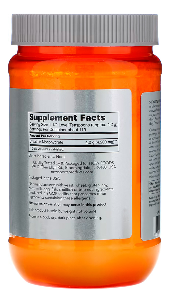 Creatina Monohidratada Now Foods 500gr Pó Importado