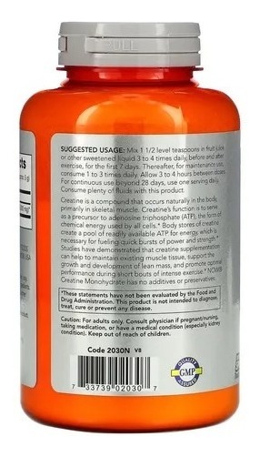 Creatina Monohydrate pó puro 227g Original Importada Now Foods |