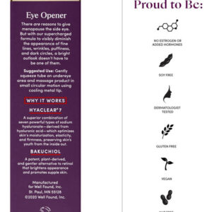 hidratação direcionada para peles delicadas: nosso creme para os olhos foi desenvolvido para refrescar e revitalizar os olhos cansados, ajudando a reduzir a aparência de inchaço e olheiras causados por alterações hormonais. Sua fórmula leve e de rápida absorção fornece hidratação profunda, deixando a pele macia, flexível e visivelmente renovada. Ingredientes antienvelhecimento poderosos: combina o HyaClear 7, uma forma avançada de ácido hialurônico de alta hidratação, com o Bakuchiol, um retinol vegetal que firma e ilumina a pele sem causar irritação, vermelhidão ou sensibilidade ao sol. Esta fórmula ajuda a suavizar as linhas finas e a manter uma aparência jovem. Resultados imediatos e de longo prazo: desde a primeira aplicação, a fórmula hidratante atua apertando e desinchando a área, reduzindo o inchaço matinal e clareando as olheiras. Com o uso contínuo, melhora a elasticidade da pele, suaviza as rugas e mantém a área dos olhos firme e levantada. Ponta metálica refrescante para alívio imediato: o aplicador de metal exclusivo proporciona uma sensação refrescante que ajuda a reduzir o inchaço e iluminar os olhos cansados.