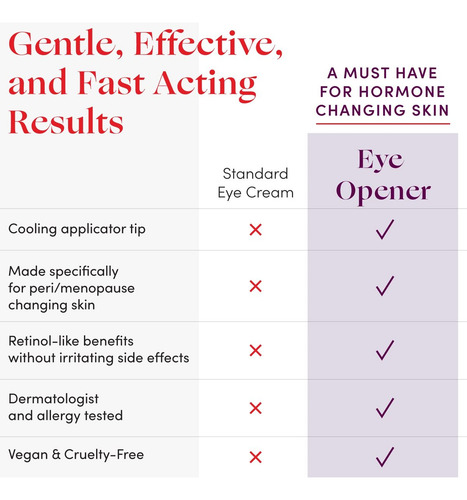 Este creme para os olhos hidrata profundamente a pele delicada, reduzindo o inchaço e as olheiras causadas por alterações hormonais.