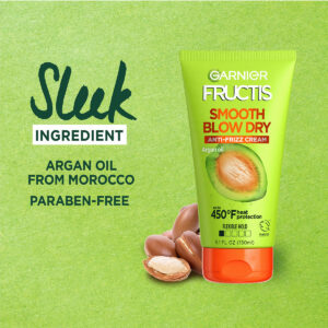 Creme antifrizz Garnier Fructis Style Smooth Blow Dry, 5,1 fl. oz. — Domina o frizz e protege do calor até 450 graus — Fácil, suave e duradouro — Fórmula leve sem parabenos, com óleo de argan de Marrocos