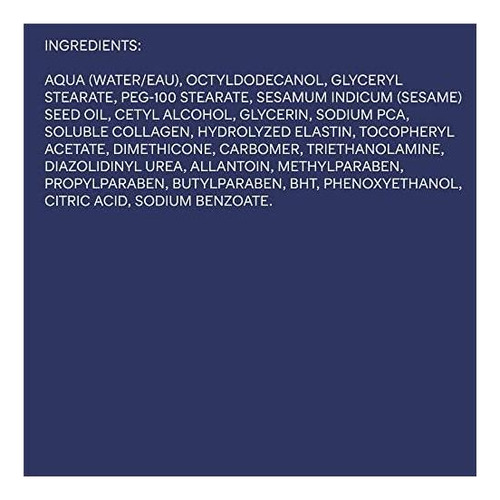 As necessidades da pele mudam com a idade. Com o tempo, a produção de colágeno diminui, as rugas ficam mais presentes e a pele perde elasticidade e hidratação. Antienvelhecimento: Mantenha uma pele suave, saudável e jovem com nossos principais ingredientes como colágeno, elastina, glicerina, ômegas 6 e 9 para revitalizar e fortalecer a pele Color: Marca: MARCELLE Dimensiones: 0.07 x 0.06 x 0.06mts. Peso del Producto: 0.19 Kilogramos. Peso de Envio: 0.19 Kilogramos. Modelo: Garantia do vendedor: 30 dias