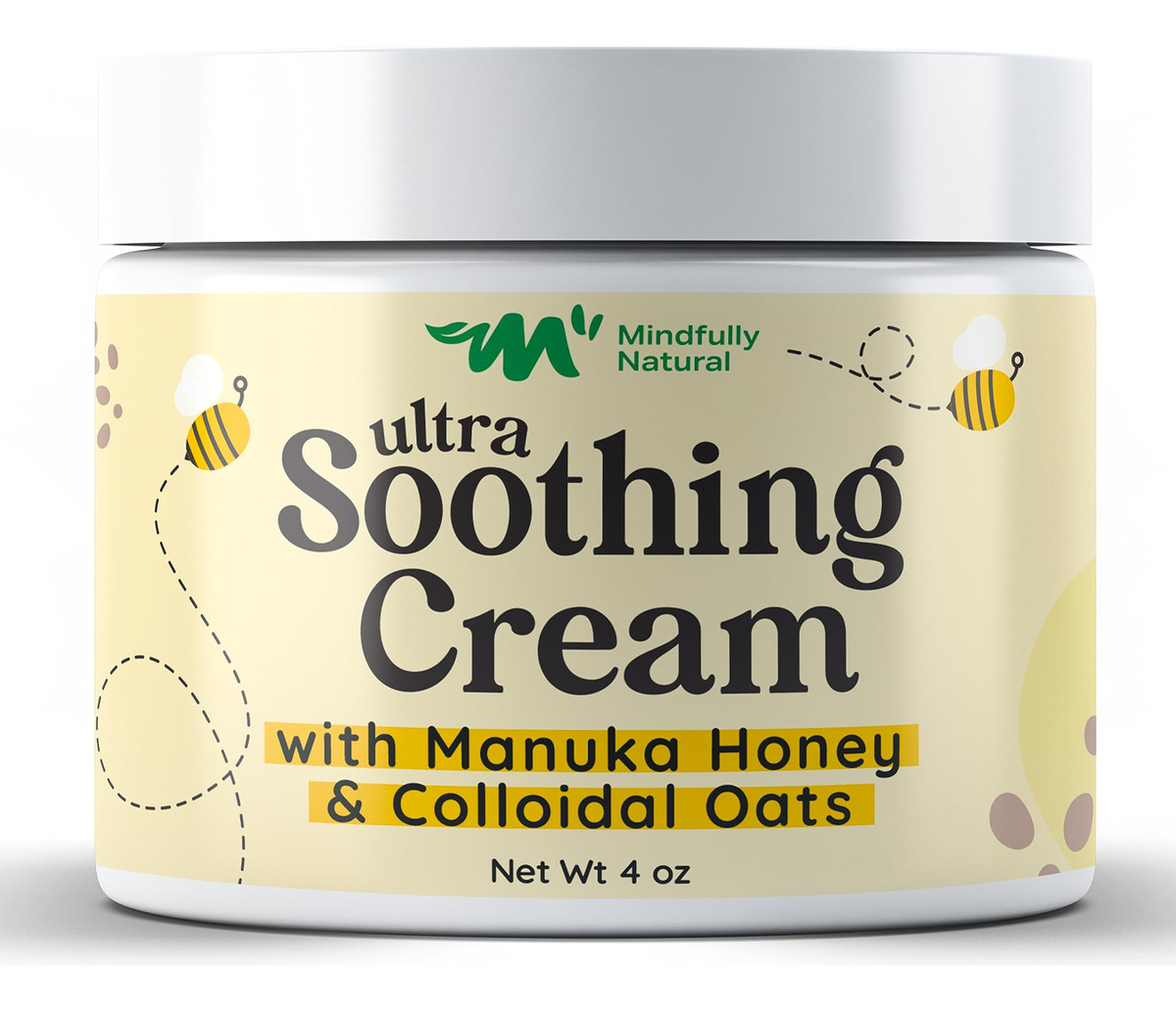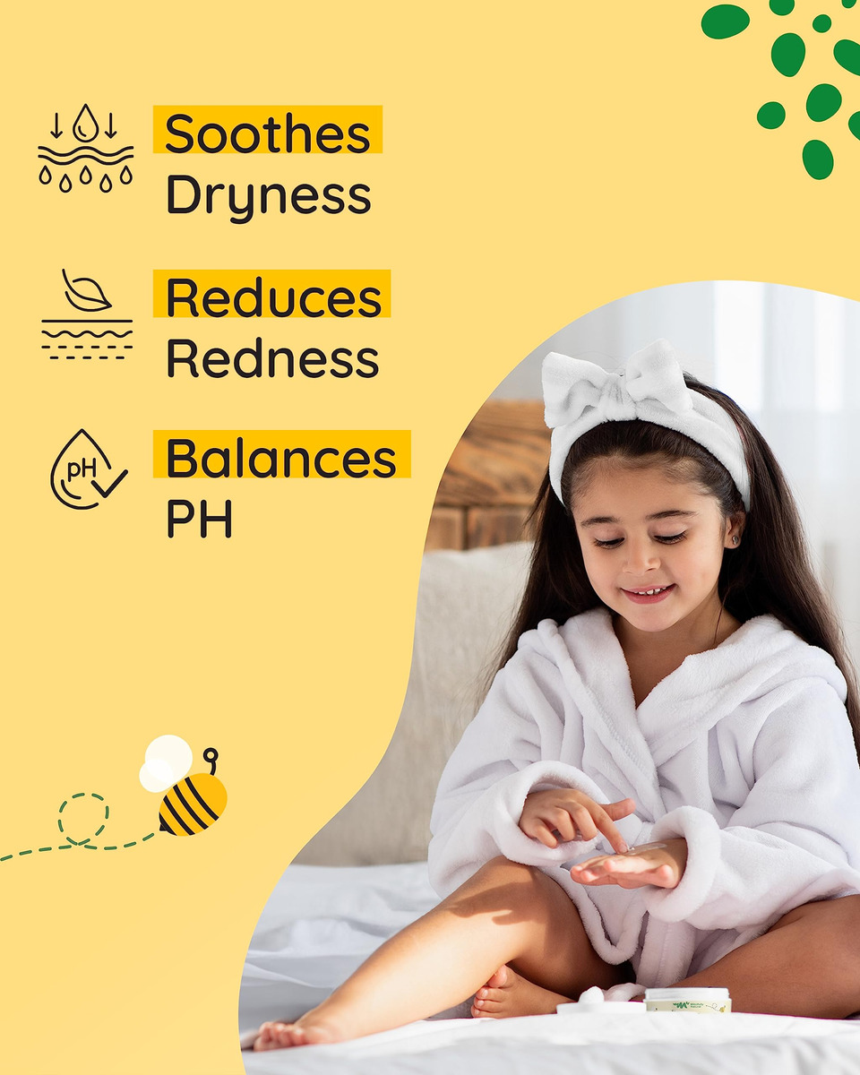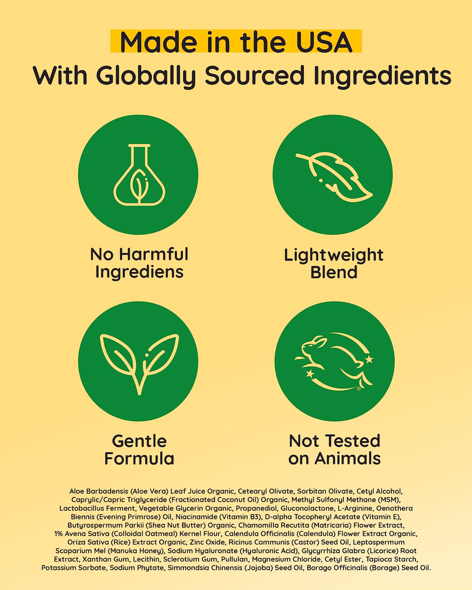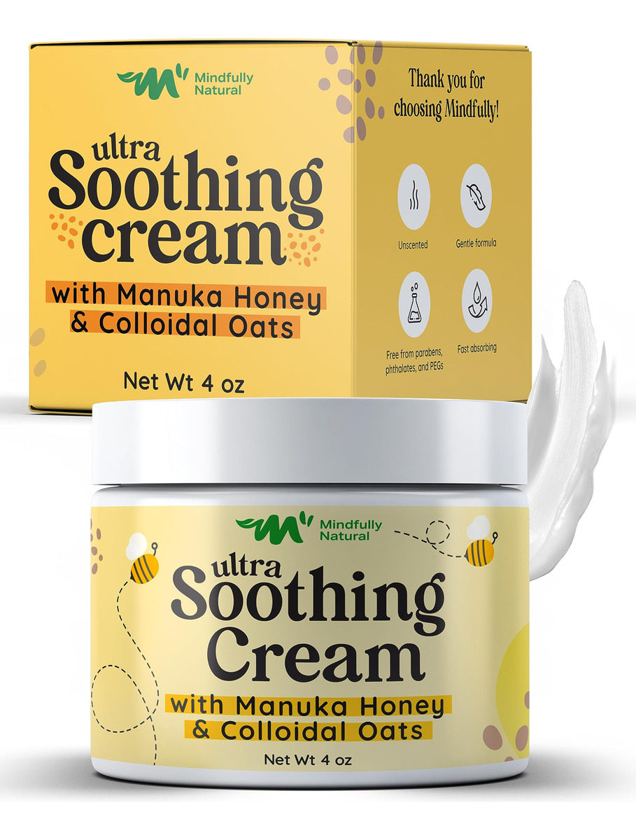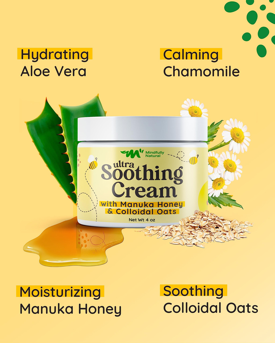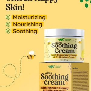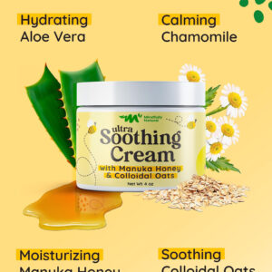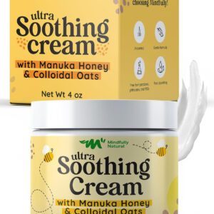 Mindfully Natural Ultra Soothing Cream Our innovative little jar of dry skin and atopic dermatitis cream relief is a solution that marries the healing power of nature with the delicate needs of your childs skin. This thoughtfully crafted manuka honey cream organic reduces redness and irritation, making the skin feel super smooth. The formula is enriched with plant-rich ingredients like manuka honey, known for its remarkable healing properties; colloidal oats that gently exfoliate and moisturize; and aloe vera, celebrated for its soothing effect. These nature-inspired elements come together in a symphony that replenishes skin hydration and creates a soothing skin care experience for you and your child. Every ingredient has been chosen mindfully. This colloidal oatmeal cream face does not contain any harmful ingredients whatsoever. With 99.5% natural and 70.88% organic ingredients, we strive to provide skincare thats as close to nature as possible. Were proud to say that our honey cream was never tested on animals. We also consciously choose to package our product in recyclable materials, reinforcing our commitment to responsible choices. This anti itch cream kids was created by a mom and her children with love and care. Its unscented and absorbs quickly, making it perfect for kids itching to get back to adventuring! Packed in a cute and handy 4oz jar, our honey manuka cream is a skincare essential your little one will love. Whats more, its great for your baby and adults too! Give the magical gift of nature-inspired care with this ultra-soothing manuka relief lotion today! – ULTRA SOOTHING: Our dermatitis relief cream is a healing superhero for delicate skin; Its a natural and organic anti-itch balm designed to soothe dryness, stop itching and reduce redness on your little ones skin – THE MAGIC OF NATURE: With manuka honey, soothing colloidal oats, calming chamomile, and hydrating aloe vera, this ointment offers relief for rashes and severe dry skin – A MOTHERS LOVE IN A JAR: Created by a supermom for her own little superheroes, this manuka honey face and body cream is lightweight and fast-absorbing; Its the perfect gentle lullaby for kids, providing rescue and relief to their itchy and irritated skin – GENTLE CARE FOR ALL: This oatmeal lotion itchy skin cream provides soothing relief for the whole family; From the babies to adults, from legs to head – its here to repair and rejuvenate skin, offering anti-itching effects wherever they are needed – MINDFULLY MADE IN THE USA: Free from harmful ingredients and animal testing, our steroid-free itch relief cream made with natural, organic ingredients; This dry skin salve is cruelty-free and planet-friendly, making it a perfect choice for skins minor mishaps