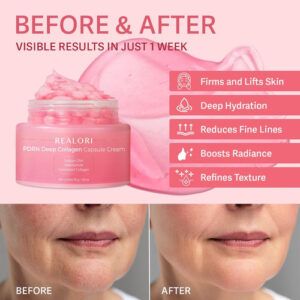 Este creme em cápsula com PDRN e colágeno rosa melhora a firmeza e elasticidade da pele, promovendo uma aparência jovem e renovada.