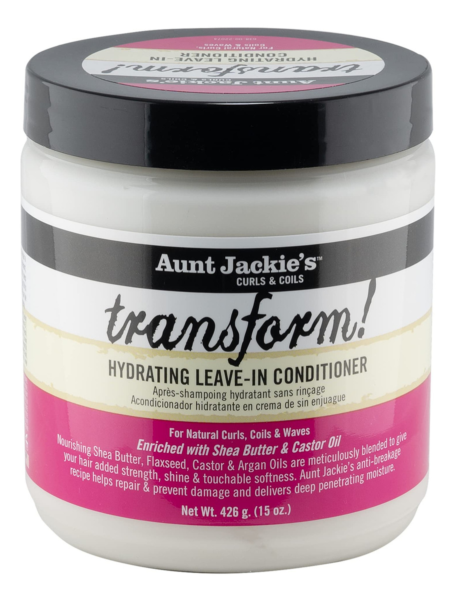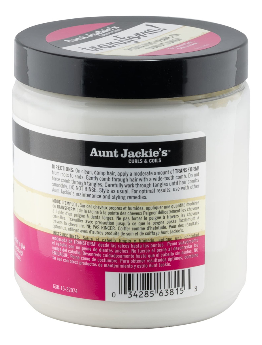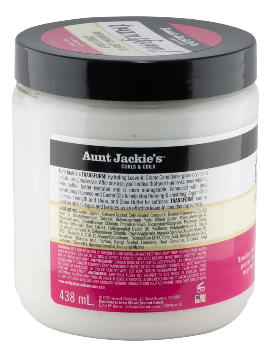 Aunt Jackie's Curls and Coils Transform Creme Condicionador Hidratante Leave-In para todos os tipos e texturas de cabelo, frasco de 15 a 15 onças do condicionador hidratante Leave-In Aunt Jackie's Transform – Transform! O condicionador de cabelo ajuda a hidratar e amaciar o cabelo seco e danificado – Enriquecido com óleos de linhaça e mamona de penetração profunda para evitar que o cabelo fique ralo e solte – O óleo de argan melhora a força e o brilho do cabelo, enquanto a manteiga de karité fornece maciez – Pode ser usado em todos os tipos e texturas de cabelo como um remédio condicionador eficaz