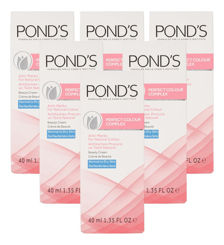 Creme de beleza Ponds Perfect Color, creme de beleza antimanchas e hidratante, para pele normal a seca, pacote com 6, 1,35 fl oz de cada creme de
