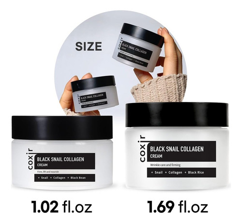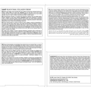 coxir CREME DE COLÁGENO DE CARACOL PRETO 30 ml/1,01 fl. oz (pacote com 1) Complexo Black-3: arroz preto, feijão, gergelim, mucina de caracol, colágeno, peptídeo Reparador e reafirmante Cuidados com a pele coreanos Descubra a hidratação profunda que sua pele merece com nosso creme facial nutritivo. Formulado com ingredientes naturais, este creme ajuda a restaurar a barreira cutânea e a manter a pele macia e radiante durante todo o dia. Sua textura leve é rapidamente absorvida, proporcionando uma sensação de frescor e conforto sem deixar resíduos gordurosos. Ideal para todos os tipos de pele, mesmo as mais sensíveis, combate os sinais de fadiga e previne o envelhecimento precoce.
