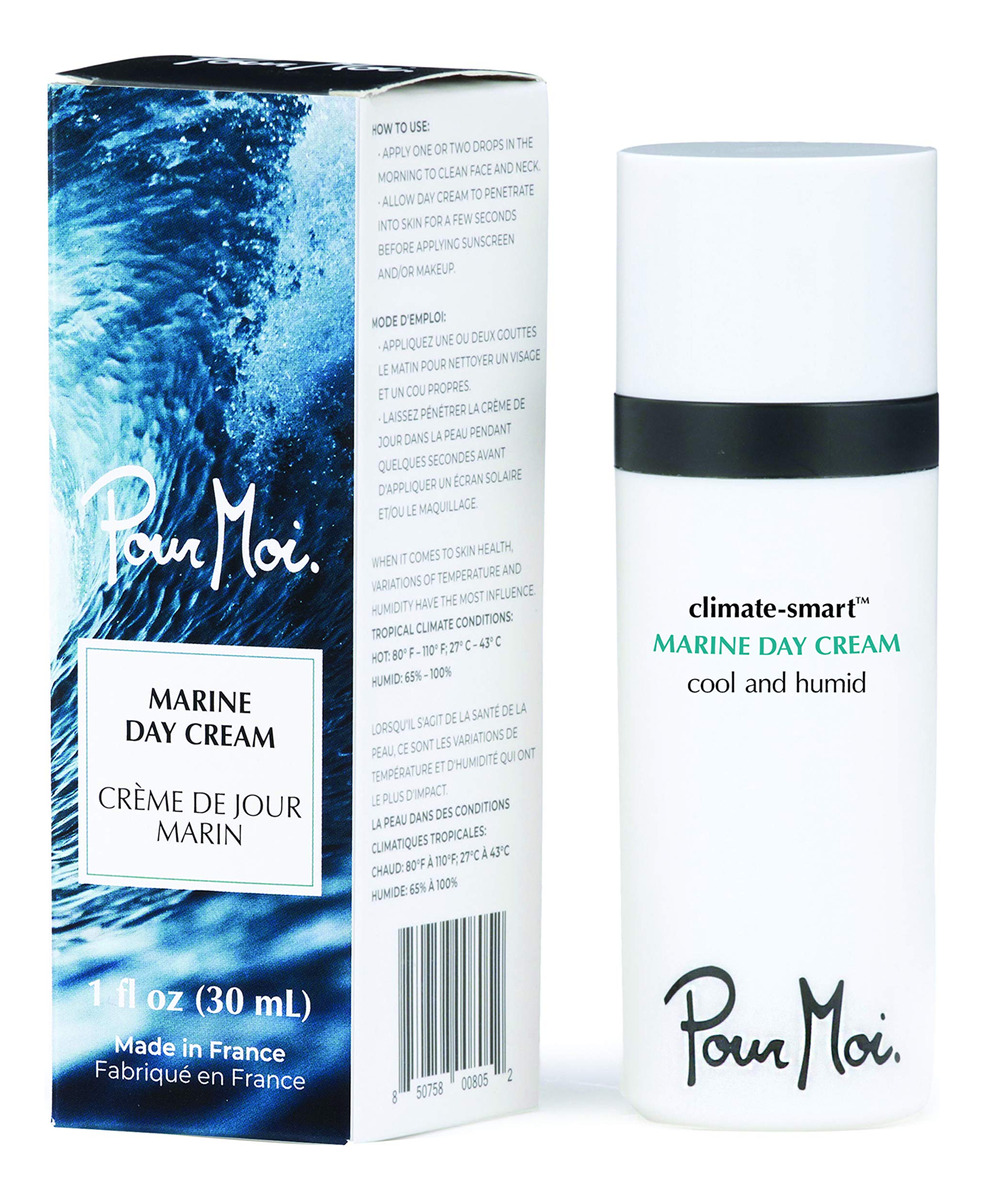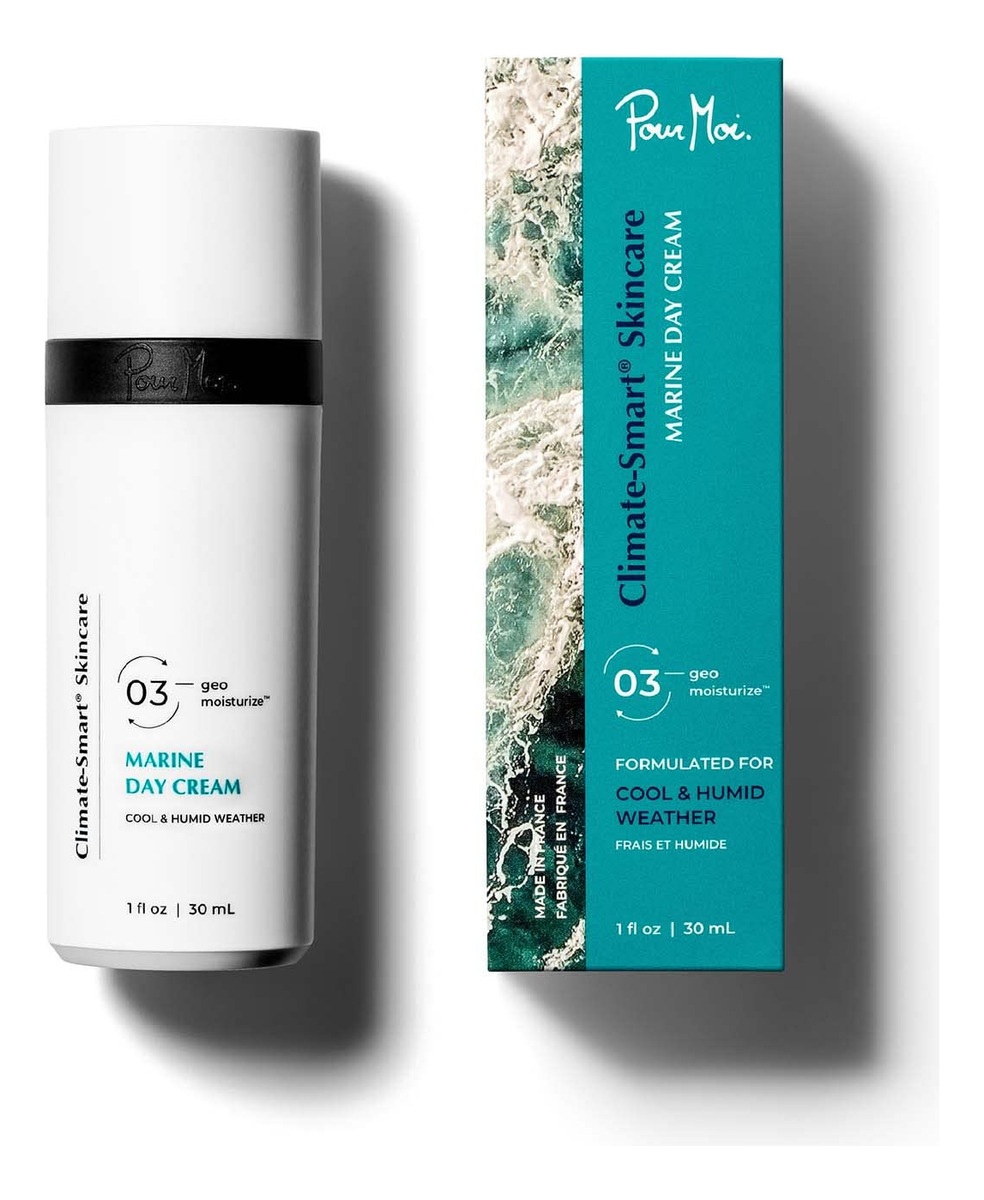 Creme de dia Pour Moi Marine | Creme facial antienvelhecimento de ponta Climate-Smart formulado para hidratar geograficamente na estação chuvosa sem luz natural para uma pele mais clara, suave e jovem – O complexo geo-hidratado/marinho Climate-Smart combina extrato de trufa branca da região de Rhne-Alpes e 3 tipos de ácido hialurônico, personalizado para equilibrar a hidratação excessiva da umidade extrema em o ar para uma pele sem brilho e sem oleosidade. – HIDRATANTE INÉDITO. O ativo marinho avançado, clinicamente comprovado, promove a produção de ceramidas cutâneas para aumentar a resiliência natural da pele em locais onde a reflexão da luz é intensificada por nuvens, oceanos, grandes lagos e rios, comprovadamente cada vez mais eficientes à medida que o estresse UV aumenta. – CLIMA ÚMIDO, PELE PROTEGIDA – O esqualano leve fortalece a barreira da pele e reduz a perda de água. Extrato tonificante de aveia e ativos formadores de película naturais de aveia criam uma película protetora tensora e suavizante para uma tez jovem e perfeita em ambientes muito úmidos. – INSTANTÂNEO DO INGREDIENTE: Os açúcares naturais fornecem umidade instantânea e contínua por dentro. Os peptídeos antienvelhecimento encapsulados de vitaminas A, C, E + aumentam o sistema natural de defesa e reparo da pele. – Dicas inteligentes para o clima climático – Combine seu creme de dia com o clima local específico em que você se encontra. Se você viajar para um fuso horário diferente, provavelmente está em um clima diferente. É quando você deve alternar seu creme de dia para combinar com o clima em que está. Menos é mais com o potente Pour Moi. Você só precisa de uma gota.