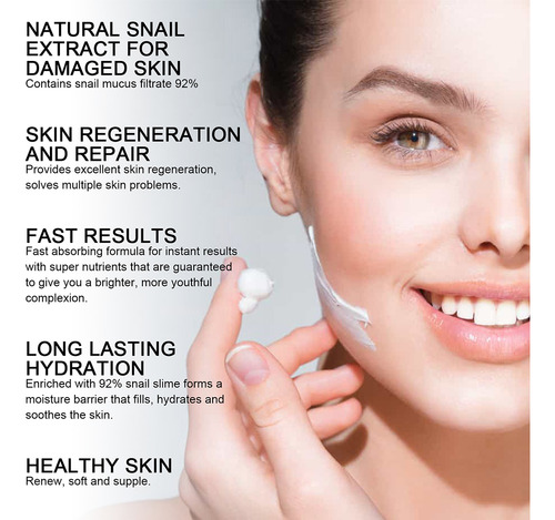 Este creme facial com essência de caracol pode repor a umidade da pele, fortalecer a barreira cutânea, hidratar e reparar a pele e restaurar a elasticidade da pele. 3.