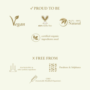 Este creme de massagem nutritivo é um cuidado regenerativo e nutritivo para a pele opaca, seca e sem vida. Fortalece, tonifica e restaura o dinamismo da pele. Seus poderosos extratos de ervas antioxidantes combatem eficazmente as espécies de oxigênio livre para proteger a pele contra o estresse oxidativo. Um alimento nutritivo e saudável para a pele, estimula a circulação sanguínea e o processo natural de renovação celular. Aumenta a síntese de colágeno, o que confere à pele sua resiliência natural, revelando uma pele jovem revitalizada com uma glória natural sedosa e suave. – Quantidade: 100 g – Tipo de pele: pele normal a seca – O pacote contém: um creme de massagem para rosto – Contém ashwagandha, neem, sândalo orgânicos certificados e óleos orgânicos prensados a frio de semente de girassol, amêndoa e aloe vera – Livre de produtos petroquímicos, parabenos, SLS/SLES PEG/PPG, ingredientes geneticamente modificados (OGM) e outros ingredientes sintéticos nocivos