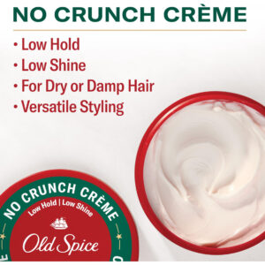 Old Spice No Crunch Crme, creme modelador de cabelo para homens, baixa fixação e baixo brilho, 2,22 onças — SOLTE: oferece uma fixação baixa que é perfeita para uma aparência natural e flexível — BAIXO BRILHO: modele seu cabelo com um acabamento de baixo brilho — PERFUME VIRIL: com o aroma de coco e notas de madeira tropical, você pode tomar um efeito olfativo sempre que usá-lo – QUALIDADE DE BARBEARIA: inspirado em barbeiros e criado para resultados de qualidade de barbearia