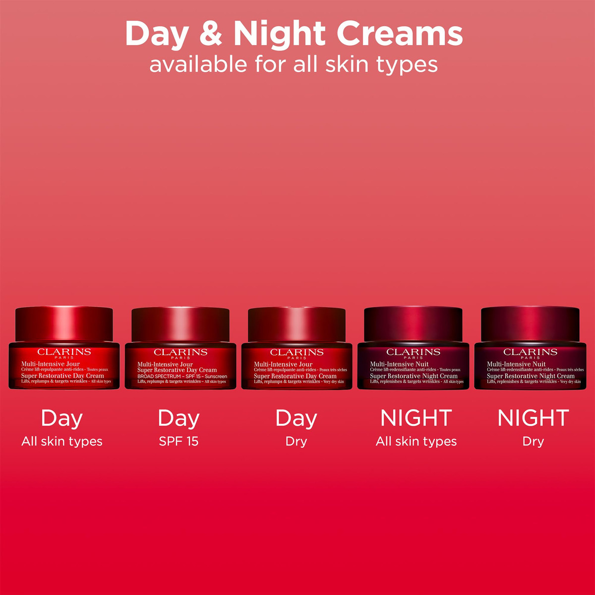 Creme noturno superrestaurador Clarins | Hidratante antienvelhecimento para pele madura enfraquecida por alterações hormonais | Ilumina e densifica a pele | Levanta e tonifica | combate manchas e rugas | 1,7 onças — Reabastece, ilumina e densifica visivelmente a pele. Este hidratante antienvelhecimento para pele madura enfraquecida por alterações hormonais é alimentado por extrato orgânico de Harungana para nutrir a pele e combater o afrouxamento da pele. – Um creme noturno antienvelhecimento que corrige manchas da idade que eleva, tonifica e restaura visivelmente a elasticidade da pele madura. – Recomendado para peles mais jovens e maduras e para todos os tipos de pele.