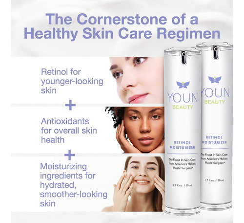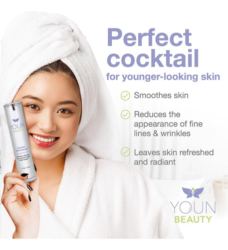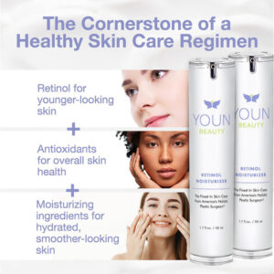 O hidratante YOUN Beauty Retinol é um poderoso coquetel de antioxidantes e hidratantes que ajuda a diminuir a aparência de linhas finas, rugas e envelhecimento prematuro. Por que deveria ser a base do seu regime de cuidados com a pele que promove a juventude? É por causa desses ingredientes: RETINOL, uma forma de vitamina A, esse potente componente é o ingrediente de cuidado da pele mais cientificamente comprovado, conhecido por suas propriedades de promoção da juventude. Ele fornece uma variedade de benefícios para a pele, desde melhorar a textura da pele até reduzir a aparência de linhas finas e rugas. ÁCIDO HIALURÔNICO à base de plantas, uma substância natural que fornece hidratação e hidrata profundamente a pele. CHÁ VERDE, um alimento antigo, rico em antioxidantes e ótimo para a saúde geral da pele, ÓLEO DE JOJOBA, um excelente emoliente que pode acalmar e hidratar a pele VITAMINA E, uma potente vitamina antioxidante que pode ajudar a pele a parecer e se sentir saudável, VITAMINA B5, uma vitamina que é facilmente absorvida pela pele e ajuda a hidratar o ÁCIDO ESTEÁRICO, uma gordura ácido que pode ajudar a hidratar a pele, criando uma barreira que ajuda a evitar a perda de água e a manter a pele EXTRATO DE PRÓPOLIS hidratado e EXTRATO DE CENTELLA ASIATICA, ingredientes que ocorrem naturalmente para hidratar e suavizar a pele. Quando combinados, todos esses ingredientes criam uma fórmula de cuidado de pele poderosa, suave e completa, que oferece uma série de benefícios! DIREÇÃO: Teste primeiro o adesivo, especialmente se você tiver uma pele sensível. É altamente recomendável usar nosso hidratante de retinol à noite, pois ele pode aumentar a sensibilidade ao sol, tornando a pele mais suscetível aos danos causados pelos raios UV. Comece com uma concentração baixa e um uso menos frequente e aumente gradualmente conforme tolerado para evitar reações adversas. – BELEZA LIMPA APOIADA PELA CIÊNCIA Eleve sua rotina noturna de cuidados com a pele com o hidratante de retinol YOUN Beauty, cuidadosamente formulado com ingredientes ativos naturais da mais alta qualidade e cientificamente comprovados para um brilho mais saudável, seguro e radiante – YOUTFUL SKIN INGREDIENTS POWERHOUSE Este hidratante facial hidratante com retinol é um buffet de ingredientes hidratantes para a pele! Ele contém 2,5% de retinol combinado com antioxidantes e hidratantes naturais, como óleo de jojoba, ácido hialurônico vegetal, vitamina E, vitamina B5, extrato de Centella Asiatica e extrato de própolis, criado para ser eficaz, mas também mais suave do que alguns outros cremes de retinol – SUAVE E BEM TOLERADO Formulado com vários hidratantes e agentes hidratantes saudáveis para a pele, o hidratante de retinol YOUN Beauty é um dos produtos de retinol mais suaves. Aplique como creme hidratante noturno para o rosto e sinta sua pele mais suave e revigorada na manhã seguinte – BENEFÍCIOS PARA A PELE COM O TEMPO O retinol, uma forma de vitamina A, ajuda a reduzir a aparência de linhas finas e melhorar a textura da pele; aumente gradualmente a frequência de uso conforme sua pele o tolera – FORMULADO PARA TODOS OS TIPOS DE PELE; FEITO NOS Brasil, livre de crueldade e livre de aditivos como parabenos, ftalatos, liberadores de formaldeído, e fragrâncias, o hidratante YOUN Beauty Retinol é seguro para todos os tipos de pele. Nossos clientes nos dizem que nosso creme de retinol é suave, mesmo em sua pele sensível. No entanto, recomendamos ir devagar nas primeiras semanas, especialmente se você tiver pele sensível