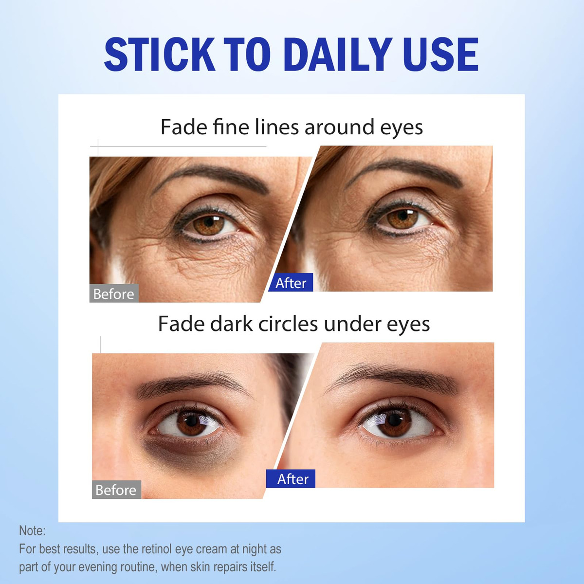 Especialmente formulado para a delicada área dos olhos, reduz visivelmente as rugas ao redor dos olhos e pés de galinha em 12 semanas. Além disso, uniformiza as olheiras e reduz o inchaço em 4 semanas – FÓRMULA ANTIENVELHECIMENTO PODEROSA: Nosso creme para os olhos lenaale retinol é especialmente formulado para atingir a pele delicada ao redor dos olhos. Repleto de retinol, uma forma potente de vitamina a, este creme para os olhos reduz a aparência de linhas finas e rugas, promovendo uma pele mais lisa e firme. Com o tempo, rejuvenesce a área para uma pele mais jovem aparência radiante e radiante — ESFOLIAÇÃO SUAVE PARA OLHOS MAIS BRILHANTES: Enriquecida com aha e bha, esta fórmula esfolia suavemente para remover as células mortas da pele e melhorar a pele textura. O aha revela uma tez mais brilhante e uniforme, enquanto o bha reduz o inchaço e as olheiras, deixando a área dos olhos revigorada e clara – HIDRATAÇÃO E REPARAÇÃO DA PELE: Nosso creme de olhos com retinol não apenas trata os sinais de envelhecimento, mas também hidrata profundamente a pele. A fórmula retém a umidade, mantendo a pele macia, carnuda e nutrida, enquanto trabalha para reparar e restaurar a pele ao redor dos olhos para uma aparência revitalizada e suave – PROMOVE A RENOVAÇÃO DA PELE: Este creme para os olhos aumenta a renovação da pele estimulando a produção de colágeno, ajudando a manter a aparência jovem. Com o uso regular, melhora o tom e a textura da pele, ao mesmo tempo que diminui o inchaço e as olheiras para uma aparência revigorada e bem descansada – MELHOR USADO À NOITE: Para obter os melhores resultados, aplique o creme de olhos de retinol à noite. O uso noturno permite que os ingredientes funcionem de forma mais eficaz enquanto você dorme, promovendo uma pele mais lisa, brilhante e rejuvenescida ao redor dos olhos